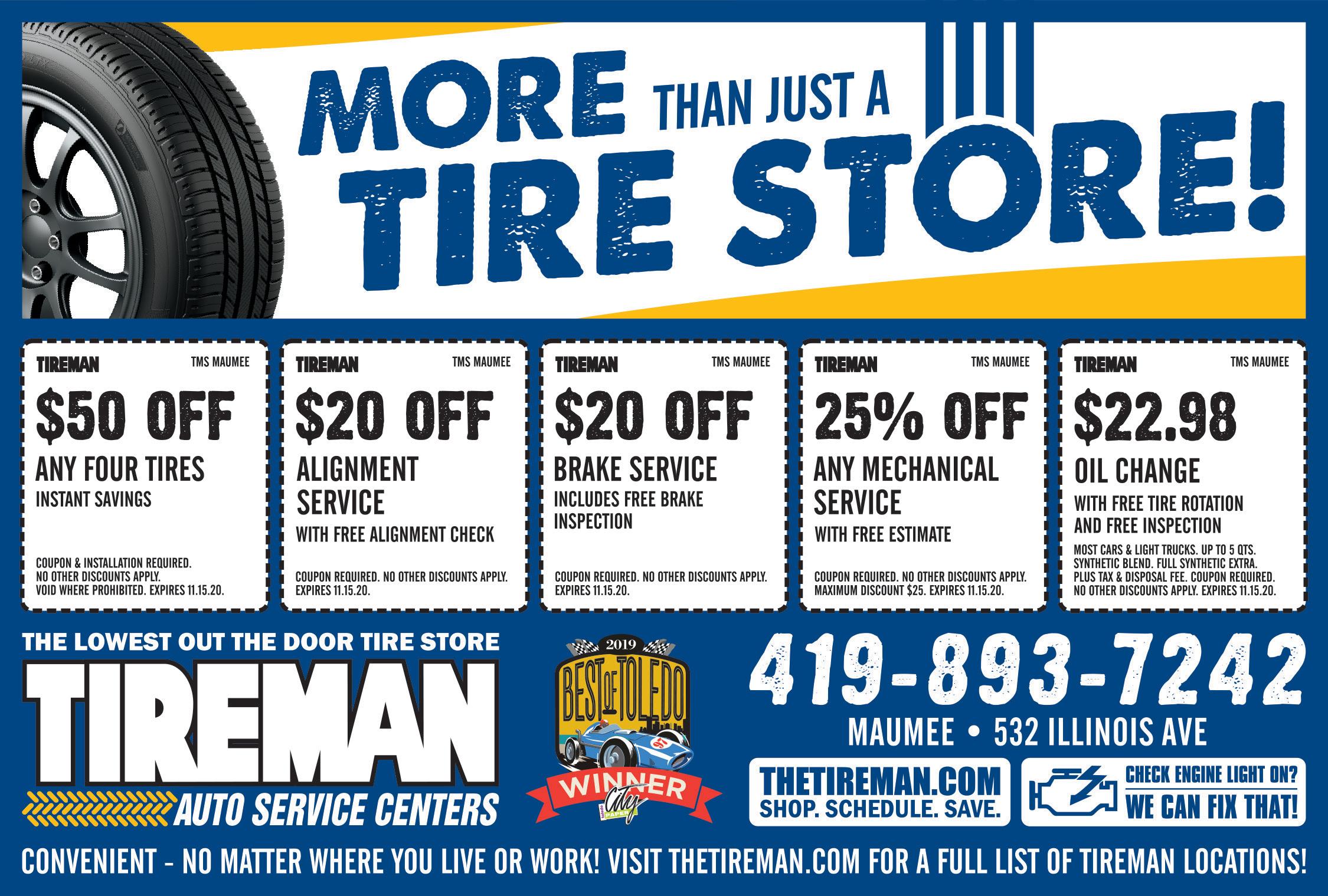359 S R eynolds Rd Toledo Most cars and light trucks. Not valid with other offers. With TMS coupon. Limited time offer. SEMI-SYNTHETIC OIL CHANGE $29.95 $39.95 Made by Chevron Lubricants USA • Up to 5 qts. Oil & Filter Change • Rotate & inspect 4 tires • Courtsey Check including visual brake check, battery, air filter, fluid, belts & hoses FULL-SYNTHETIC OIL CHANGE Most cars and light trucks. Not valid with other offers. With TMS coupon. Limited time offer. Made by Chevron Lubricants USA • Up to 5 qts. Oil & Filter Change • Rotate & inspect 4 tires • Courtsey Check including visual brake check, battery, air filter, fluid, belts & hoses WINTER SPECIAL WE BEAT ANY PRICE GUARANTEED! • Wheel Alignments • Head Gasket & Timing • Brakes & Brake Repair • Oil Change • Tires - New & Used • Check Engine LIght • Belts & Hoses • Lights & Wipers • Car Heating & A/C • Steering & Charging • Radiator & Engine Cooling • Engine & Transmission Rebuild - Bring in your official estimateW We Don’t Make EXCUSES , We Make It HAPPEN! Most makes & models. Not valid with other offers. With TMS coupon. Limited time offer. Flush & Fill BRAKE SPECIAL Most cars and light trucks. Not valid with other offers. With TMS coupon. Limited time offer. INCLUDES ALL 4 BRAKES Includes: • Pads & Rtotos or Drums • Limited Lifetime Warranty on Pads • 2 Year Warranty on Rotors BRAKE SPECIAL LIFETIME WARRANTY Most cars and light trucks. Not valid with other offers. With TMS coupon. Limited time offer. Brake Pads all the way around Limited time offer. BALANCE TIRES $7.99 Not valid with other offers. With TMS coupon. Limited time offer. EACH $7500 INCLUDES COOLING FLUSH & THERMOSTAT $29500 $12000 GET READY FOR COLD WEATHER NEW BATTERIES $14400 3 YR. Not valid with other offers. With TMS coupon. Limited time offer. Not valid with other offers. With TMS coupon. Limited time offer. USED TIRES $39.95 INSTALLED ATOZEEMAX