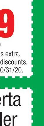 WEEKDAY LUNCH SPECIALS 1101 PRAY BLVD • WATERVILLE • PH 567-952-2128 • FAX 567-952-2129 IN THE KROGER PLAZA • MON-THURS 11AM-10PM • FRI & SAT 11AM-10:30PM • SUNDAY 11AM-9PM BUY ONE GET ONE 1/2 OFF ENTREE Dine-in only • LB717B Excludes Alcohol & Tax With TMS coupon. Not valid with any other offer. Exp 10/31/20 $5 OFF $25 - OR$8 OFF $50 Online Order LB717A Excludes Alcohol & Tax With TMS coupon. Not valid with any other offer. Exp 10/3120 ORDER ONLINE at labandamexicangrill.com MARGARITA & FULL BAR now on Sunday! Select Appetizers Mon-Fri 3pm-6pm 11AM-3PM - Excludes Fajitas EVERY TUESDAY KIDS EAT FREE! 1 per adult entree $ 5 75 Patio, Dining Room & Bar NOW OPEN! 1/2 OFF Let’s Social Distance Together! CARRYOUT STILL AVAILABLE 1 1/2 shots of tequila 1 shot of cranberry juice cocktail 1/4 C of whole berry cranberry sauce 1/2 shot of triple sec 10 ice cubes Sweetened dried cranberries, for garnish Lime, for garnish Move over mulled ciders... this crisp "Cranberry Margarita" makes a great autumn-inspired beverage Combine all ingredients except garnish in a blender. Blend on high until smooth and frosty. Serve in a margarita glass. Garnish with dried cranberries and a lime wheel. Cranberry Margarita Serves 1 Guess Who? Answer: Marisa Tomei I am an actress born in New York on December 4, 1964. My breakout role in a film about a floundering attorney stuck in rural America won me an Academy Award. I've had many other film credits, including playing an aunt to a popular web-slinging superhero. • Power Washing • Sealing www.hiteconcrete.com Ask about our NEIGHBORHOOD referral discount! Licensed & Insured. Locally owned & operated - Serving Ohio, Michigan & Indiana 10% OFF Any Concrete Leveling Job! OF $200 OR MORE! Must present coupon at time of acceptance. Expires 10/31/20 419-875-4279 1-866-404-4483