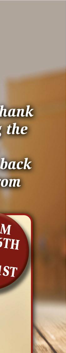 NEW DINING HOURS: SUNDAY NOON - 9:30PM MONDAY - THURSDAY 4:30 - 9PM • SATURDAY 11:30AM - 9:30PM CARRY OUT AND DELIVERY HOURS: SUNDAY NOON - 9:30PM • MONDAY - SATURDAY 11AM - 9:30PM $5 OFF Your Total Purchase of $30 or More Not valid with Family Meals or any other offers or discount. Expires 8/13/20 DINING ROOM AND HIBACHI NOW OPEN Hibachi Family Meals To Go HIBACHI FAMILY MEAL FOR 4 $59.95 (1) Hibachi Steak (1) Hibachi Shrimp (2) Kids Hibachi Chicken Includes Edamame, Narumaki, Fried Rice, 2 Salads & 4 Soups HIBACHI FAMILY MEAL FOR 3 $49.95 (1) Hibachi Steak (1) Hibachi Chicken (1) Kid Hibachi Shrimp Includes Edamame, Fried Rice, 2 Salads & 3 Soups Gift Certificates Available Entire Menu Available for Carryout For advertising information, call 330-350-3141 NEXT ISSUE IN HOMES: August 13, 2020 ADVERTISING DEADLINE: July 31, 2020