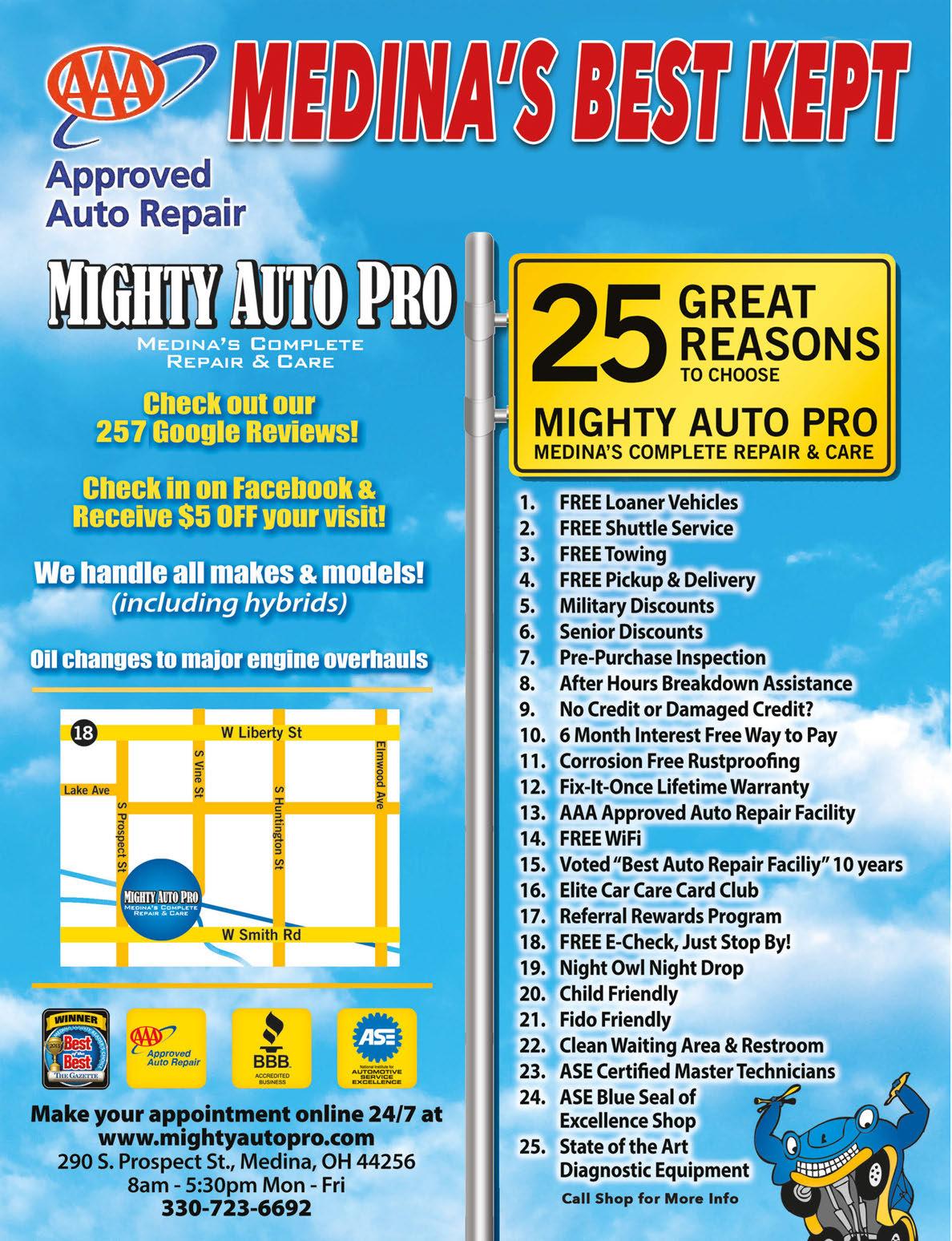 18 W Liberty Street 18 N State Rd S State Rd W Liberty Street SAVE $5 On Any Oil Change on ANY Brake Service ($20 per Axle) Diagnostic Testing Reg. $99.95 Must present coupon prior to service. Cannot be combined with any other offer or coupon. Expires 8-15-20. with Any Service Must present coupon prior to service. Cannot be combined with any other offer or coupon. Expires 8-15-20. Most cars. Must present coupon prior to service. Cannot be combined with any other offer or coupon. Expires 8-15-20. Most cars. Must present coupon prior to service. Cannot be combined with any other offer or coupon. Expires 8-15-20. Must present coupon prior to service. Cannot be combined with any other offer or coupon. Expires 8-15-20. $10 OFF $100 or More $20 OFF $200 or More $30 OFF $300 or More Must present coupon prior to service. Cannot be combined with any other offer or coupon. Expires 8-15-20. NOW $99.95 Reg. $129.95 up to 3 lbs of 134A Freon BEAT THE SUMMER HEAT WITH SOLAR SHADES FROM BUDGET BLINDS Call today for a free in-home consultation! Serving Medina & Wadsworth Areas • Locally Owned & Operated (330) 790-1083 25% OFF MSRP Excludes Lutron and Window Film Products Coupon may not be combined with any other offer. With TMS coupon only Offer expires 8/13/20. *At participating franchises only. Offer valid at time of initial estimate only. Offer not valid with any other offers. Some restrictions may apply. Offer available for a limited time only. ©2012 Budget Blinds, Inc. All rights reserved. Each franchise independently owned and operated. Budget Blinds is a registered trademark of Budget Blinds, Inc. www.budgetblinds.com/medina • Honeycomb • Wood Blinds • Faux Wood • Shutters • Window Shadings • And More!
