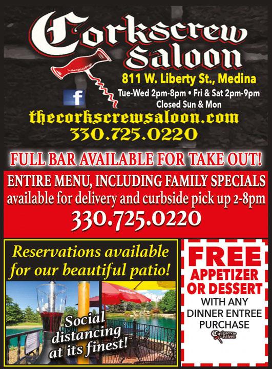 MEDINA July 2020 Shop locally. Save locally. FRESH Seafood & Crab, Over 100 different dishes, Chinese, Cantonese PARTY ROOM & GIFT CERTIFICATES AVAILABLE 1201 North Court, Medina (Kmart Plaza) • 330-725-6155 Mon-Thur 11am-10pm • Fri & Sat 11am-11pm • Sun 11am-10pm Lunch $5.35lb Dinner $5.95lb (Seafood $2.00 Extra) Senior 65 Discount Lunch 50¢ Off Dinner $1.00 Off Dragon Buffet Dragon Buffet Dragon Buffet Dragon Buffet 50¢ OFF LUNCH $1.00 OFF DINNER Dine in only - No carry out. One coupon per adult person. Valid with coupon. Not valid with any other offer. Expires 8/16/20 M Dine in only - No carry out. One coupon per adult person. Valid with coupon. Not valid with any other offer. Expires 8/16/20 M Dine in only - No carry out. One coupon per adult person. Valid with coupon. Not valid with any other offer. Expires 8/16/20 M Dine in only - No carry out. One coupon per adult person. Valid with coupon. Not valid with any other offer. Expires 8/16/20 M 50¢ OFF LUNCH $1.00 OFF DINNER 50¢ OFF LUNCH $1.00 OFF DINNER 50¢ OFF LUNCH $1.00 OFF DINNER A/C or Furnace Clean & Check $7900 Must present coupon at time of service. Not valid with any other offers. With coupon only. Expires 8-31-20 330-723-0001 Must present coupon at time of service. Not valid with any other offers. With coupon only. Expires 8-31-20 Any Air Conditioning orFurnace Installation $5000 OFF 330-723-0001 Trane Dealer for 30 years Ask for Dave Dufala. 330-723-0001 3374 Pearl Rd. (North of Fenn Rd.) LOWER YOUR GAS BILLS!