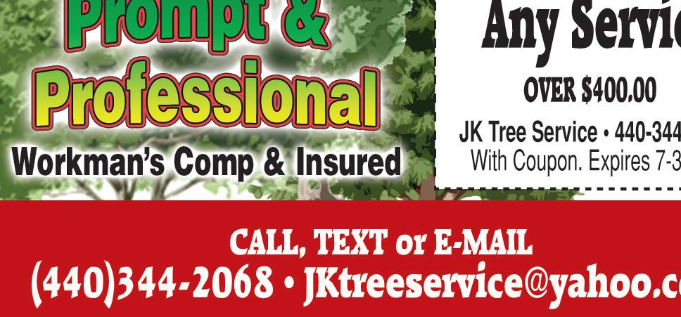 SHOP LOCALLY $$$ SAVE LOCALLY™ • VISIT www.TownMoneySaver.com FOR MORE COUPON SAVINGS! 440-283-WASH (9274) Mastercard VISA • Non-Pressure Roof Washing • House Washing • Deck Staining WetJetPressureWashing.com Your Deck Professionals! TODAY! LET US START YOUR $50 OFF COMPLETE HOUSE WASH We Use Eco Friendly Detergent, Hot & Cold Water, High & Low Pressure Wash Process Removes Mold, Mildew & Algae & Makes Your House Look New Again! Not valid with any other offer. Expires 8-30-2020 Must be complete roof. Not valid with any other offer. Expires 8-30-2020 Includes no-pressure soft-wash method. Removal of unsighlty black mold stains. Will Not Harm Shingles! $75 OFF ROOF CLEANING Wash with Eco Friendly Detergent INCLUDES ONE COAT OF PROFESSIONAL GRADE DECK STAIN OR SEALANT $100 OFF DECK STAINING/SEALING Not valid with any otheroffer. Expires 8-30-2020 9391 Mentor Ave. • Mentor • Near Heisley 440-290-0940 www.cbdlakecounty.com TINCTURES • GUMMIES • FLOWER BEAUTY • VAPE • PETS • TOPICAL CREAM Organic, Non-GMO Hemp. Third party lab tested. 5 OFF Any Purchase of $50 or More CBD American Shaman Mentor With coupon. Not valid with other offers. Expires 7-30-20 $15 OFF CBD American Shaman Mentor With coupon. Not valid with other offers. Expires 7-30-20 Any Purchase of $100 or More