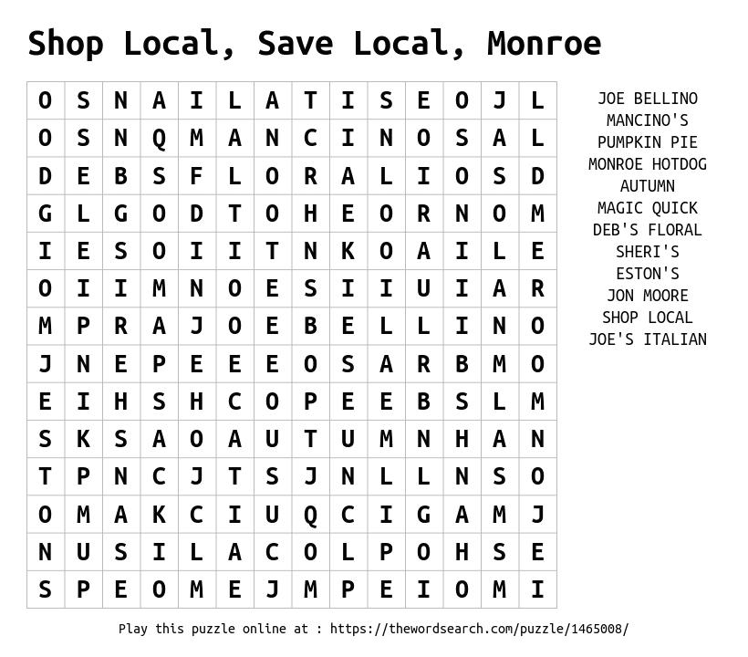 MONROE BUSINESS FALL SEARCH How to win... Win a Photo copies are acceptable. Multiple entries can be mailed in same envelope. One entry per person please. Upon entry submission, winning participants automatically authorize publicaiton of their name in the following issue of Town Money Saver Winners will be contacted via USPS Mail. Name Ph # Address MA I L TO: Town Money Saver 5758 Main St., Unit 7, Sylvania, OH 43560 $25 Tell us a few businesses you’d like to see! in future issues of Town Money Saver The winning entry will be drawn from correct entries received on or before OCTOBER 14, 2020 1 2 3 Will you be our October WINNER? Gift Card to