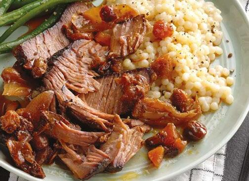 Place fruit and onion in a 3- or 4-qt. slow cooker; add apple juice. Top with roast; sprinkle with seasonings. Cover and cook on low until meat is tender, 6-8 hours. Serve beef with fruit mixture.