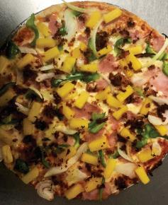 TOPPINGS: Fresh mozzarella, feta cheese, cheddar jack cheese, provolone, pepperoni, ham, italian sausage, beef, salami, bacon, chicken, anchovies, mushrooms, green pepper, banana pepper, jalapeño pepper, onion, red onion, black olives, green olives, spinach, pineapple, roma tomato, fresh garlic.