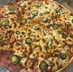 Pepperoni, cheese, sauce, mushrooms and hot peppers