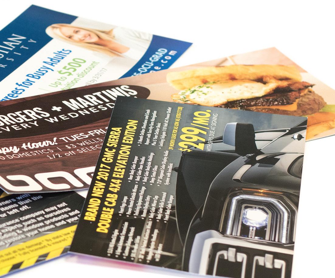 PRICE INCLUDES Professional graphic design, high-quality printing, glossy UV coating, and mailing via USPS. Make an impact with direct-mail postcards. Local advertising made easy. EFFECTIVE | AFFORDABLE | CONVENIENT | TARGETED AS LOW AS 18¢ PER ADDRESS* Contact Kevin for more information. 330.280.2180 kevinprovance@townmoneysaver.com A variety of ways to make a statement. 9" 10" Choose from 4 different sizes • 9” x 5” • 11 ½” x 5” • 9” x 6 ⁄” • 9” x 10” Choose from several targeting options BASIC – Mail to every address* SMART – Mail to specific addresses using demographic information EXACT – Mail to your own address list *Mail to your entire TMS market for the best value – limited availability.