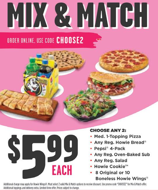 Shop locally. Shop safely. NORTHWEST TOLEDO Support LOCAL businesses! OCTOBER 2020 To advertise, call 419.466.7358 SATURDAY Live Music www.5demayotoledo.com Any purchase of $30 or more With TMS coupon. Dine in only. Not valid with any other offers. Exp. 10/31//20 LUNCH SPECIAL $599 Any Lunch With TMS coupon. Dine in only. One coupon per person. Not valid with any other offers. Exp. 10/31/20 Lunch Menu Only. $3 OFF Pitcher of Margaritas With TMS coupon. Dine in only. One coupon per person. MARGARITA TO - GO with your take-out order MEXICAN GRILL & BAR CINCO DE MAYO locations! Not valid with any other offers. Exp. 10/31/20 $5 OFF ALEXIS ROAD LOCATION MARIACHI BAND Thurs & Sun 5-9pm HungryHowiesToledo TOLEDO 5820 Douglas Rd. Corner of Douglas & Alexis 419-474-2800 Any Large Specialty PIZZA Hungry Howie’s Flavored Crust Pizza All stores independently owned & operated. Prices & participation may vary. Delivery, tax & additional toppings extra. Additional charges may apply. Coupon/code required at checkout. Expires 10/31/20 USE CODE 21701 $12.99 USE CODE 27601 Howie Bread® ANY ONLINE ORDER OF $12 OR MORE ONLINE EXCLUSIVE FREE USE CODE 26901 USE CODE 25301 MEGA MEAL MAKE ANY PIZZA A MEGA MEAL WITH A REG. HOWIE BREAD® & 2-LITER $5.99 $24.99 LG. FAMILY COMBO LG. 2-TOPPING PIZZA & LG. 5-TOPPING PIZZA Hungry Howie’s Flavored Crust Pizza All stores independently owned & operated. Prices & participation may vary. Delivery, tax & additional toppings extra. Additional charges may apply. Coupon/code required at checkout. Expires 10/31/20 Hungry Howie’s Flavored Crust Pizza All stores independently owned & operated. Prices & participation may vary. Delivery, tax & additional toppings extra. Additional charges may apply. Coupon/code required at checkout. Expires 10/31/20 Hungry Howie’s Flavored Crust Pizza All stores independently owned & operated. Prices & participation may vary. Delivery, tax & additional toppings extra. Additional charges may apply. Coupon/code required at checkout. Expires 10/31/20 WE DELIVER