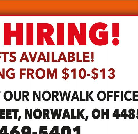 NORWALK ALSO SERVING MILAN & MONROEVILLE October 2020 Shop locally. Shop safely. CASH — WE HAVE A BIGGER DELIVERY ZONE — NORWALK • MILAN • AVERY • OLENA • COLLINS • MONROEVILLE • NORTH FAIRFIELD Pizza Cravin’ 419-668-2728 Not valid with other coupons, promotions, or gift certificates. Please mention coupon when ordering. Offer expires 10-29-20. XL 2-Item Pizza for only $11.49 HOURS: 4-10pm Mon-Sat CLOSED on Sundays and major holidays We can cater your lunch with 24 hours’ notice $6.00 Medium 1-Item Pizza FAMILY COMBO: 1 XL 16” 2-Item Pizza, 12 wings, Bread Sticks, Cinabites, & a 2 liter of Pepsi product Pizza Cravin’ 419-668-2728 Pizza Cravin’ 419-668-2728 Not valid with other coupons, promotions, or gift certificates. Please mention coupon when ordering. Offer expires 10-29-20. Not valid with other coupons, promotions, or gift certificates. Please mention coupon when ordering. Offer expires 10-29-20. $13.99 Two 12” Subs $25.99 ONLINE ORDERING AVAILABLE! — through Pizza-Crain.com or Slice — Pizza Cravin’ 419-668-2728 Not valid with other coupons, promotions, or gift certificates. Please mention coupon when ordering. Offer expires 10-29-20. $21.00 1-Item Party Pizza Curbside Service Available! Pizza Cravin’ 64 Benedict Ave., Norwalk 419-663-2728 419-668-2728 C R A V INWOOD UTOMOTIVE 32 S. Linwood Norwalk 419-668-5635 58 Years in Business — Authorized Auto Care Center Since 1962 — FREEWINTER INSPECTION •CheckCoolant•CheckBattery •CheckBrakes 2MASTER AUTOTECHNICIANS! WENOWPERFORM HUNTER WHEELALIGNMENTS! 36MONTHS 36,000MILES PARTS&LABORWARRANTY