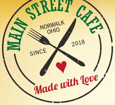 Weekday Special: Home Style Breakfast 2 eggs, 2 strips of bacon, home fries, & toast $5.50 Thursday & Saturday Special, 11am-4pm $2 burgers and $2 fries Daily Lunch Specials! Large Menu Wraps, Soups, Salads, Hand-Pressed Burgers, Sandwiches, Fried Basket Kids’ Menu MAIN STREET CAFE 567-743-9018 MAIN STREET CAFE 567-743-9018 With coupon. Not valid with other offers. Expires 10-29-20. With coupon. Not valid with other offers. Expires 10-29-20. Buy any Entreé, get second for Half Price Free Beverage Entreé Purchase Free Wi-Fi Homemade Soups Daily Hand Breaded Lake Erie Perch Daily! Cur ide Pickup Available! Just call ahead and order ready. 5 E t Main St. • Norwalk 567-743-9018 Our Dining Room Open! Large Number of Salad Selections Daily HOURS: CLOSED MONDAYS OPEN Tues-Fri 7am-4pm Sat 7am-2pm • Sun 8am-2pm MAIN STREET CAFE 567-743-9018 With coupon. Not valid with other offers. Expires 10-29-20. Cup of Soup and Tossed Salad $5.99 Try Our Philly Che e Steak with Fri ! Just $9.99 Fr h-made Cinnamon Rolls! Homemade Pi Available Daily! Our full menu is available on Facebook! We follow all sugg ted health guidelin ! We care about our customers and our staff! That’s why we wear masks, maintain social distiancing, sanitize after each customer, and regularly sanitize frequently used objects and areas.
