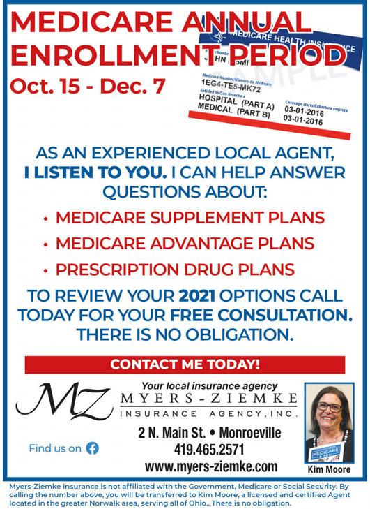 James for Huron County Commissioner Paid for by the Committee to Elect Melissa James Commissioner, Karen Prelip, Treasurer. Positively the right choice! At the upcoming November 3rd election, I ask that you vote for Melissa James for the of ce of Huron County Commissioner. During her tenure as Executive Director of the Huron County Chamber of Commerce, Melissa was instrumental in keeping Summit Motorsports in Huron County as well as keeping Norwwalk Furniture open for business. Melissa has an incredible work ethic and will add insight, knowledge, ideas and skills to our Commissioners’ o ce. She is a strong leader who is willing to listen and work with everyone. As County Commissioner, Melissa will be a great asset and leader for the citizens of Huron County. Please join with me and elect Melissa James as our new Huron County Commissioner. John Elmlinger Monroevillle, Ohio Honesty is our priority. Let us earn your trust! 419-668-3071 or 419-668-6121 Rt. 20 • 274 Cleveland Rd., Norwalk www.williamsnorwalktire.com Click onto newsletters on our website for money saving tips. No Tricks, Just Treats at Williams Norwalk Tire & Alignment 419-668-3071 —or— 419-668-6121 10% OFF when you pay with cash or check — up to $20 discount! Please mention discount when dropping off vehicle. With coupon. Not valid with other offers or discounts. Expires 10-29-20.