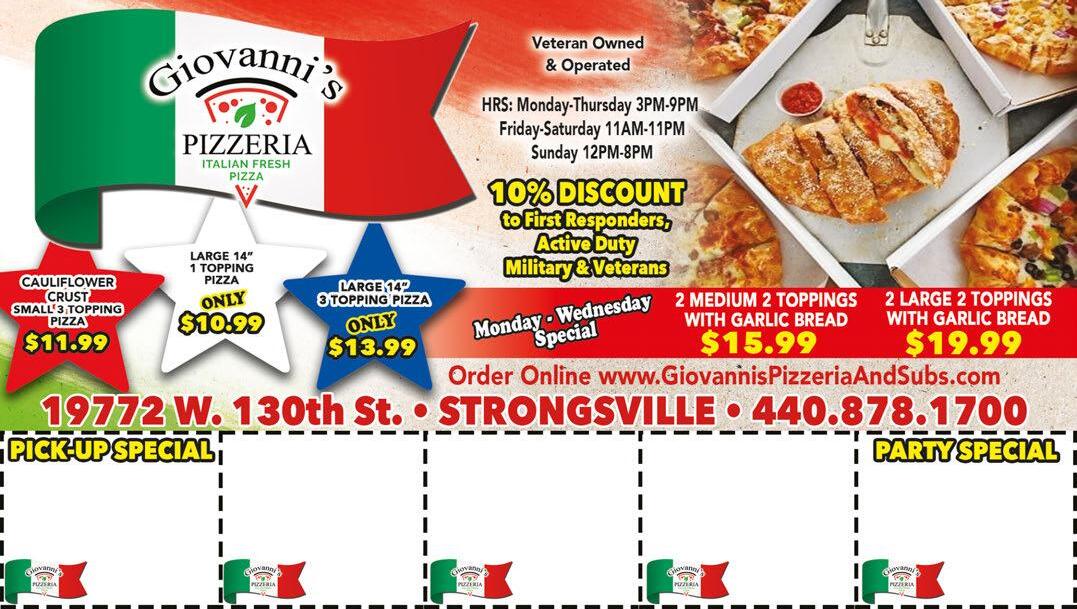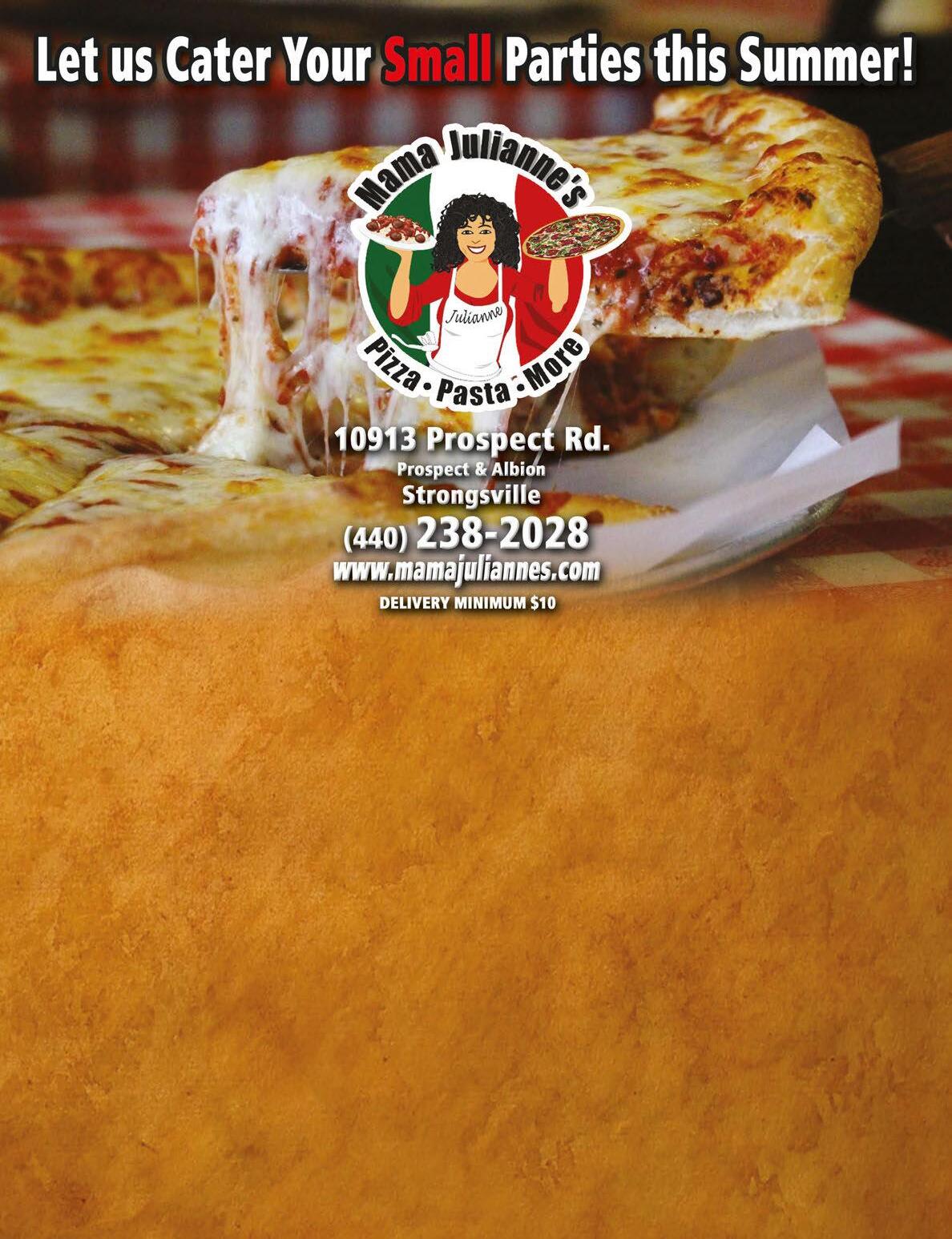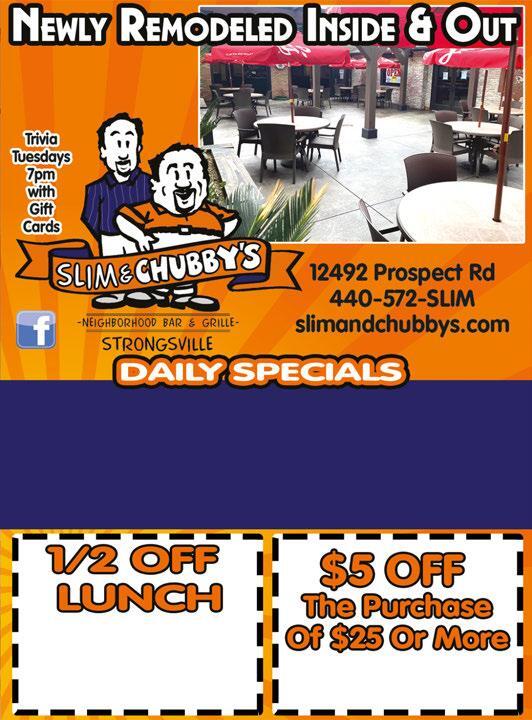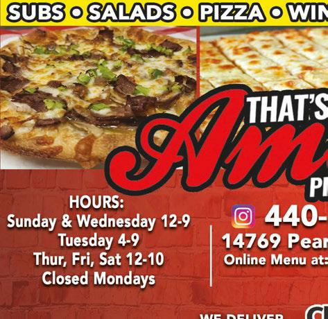 MONDAYS $0.69 Regular Wngs $0.59 Boneless Wings (Dine in only) $9.99 Black Angus Steak Dinner $10.99 Homemade City Chicken TUESDAYS $7.00 Select Burgers (Dine in only) $9.99 Fried Chicken Dinner *Some Specials are Dine In Only Prices subject to change WEDNESDAYS Wine WednesdayHalf Off Bottles & Glasses Chef’s Choice Special $9.99 Black Angus Steak Dinner THURSDAYS Taco Thursday $13.99 BBQ Ribs & Chicken $0.69 Reg Wings/$0.59 Boneless Wings (Dine in only) TROPICAL THURSDAYS FRIDAYS $15.99 Slow-Roasted Prime Rib Dinner Fresh Hand-Breaded Lake Erie Perch Dinner Fish & Pierogi Dinner Specials SATURDAYS Taco Saturday $14.99 Steak & Shrimp Dinner SUNDAYS Seafood Sunday: Cluster of Crab Legs $7 One Dozen Mussels $4 • Seafood Alfredo $12.99 $0.69 Reg Wings / $0.59 Boneless Wings (Dine in only) Buy One Lunch Entree Get The 2nd Of Equal Or Lesser Value 1/2 OFF Valid 11am to 4pm Not valid with $6 lunch special. Not valid on recurring weekly specials. Not valid with any other coupon. Expires 8/13/20. Valid 4pm til Close Not valid on recurring weekly specials. Not valid with any other coupon. Expires 8/13/20. CLASSIC CAR CRUISE-IN Every Wednesday (Weather Permitting) Not valid with any other coupon or special. Valid with coupon. One coupon per order. Expires 8/13/20. Not valid with any other coupon or special. Valid with coupon. One coupon per order. Expires 8/13/20. 1/2 Sheet 1-Topping & 10 Wings (choice of 1 sauce) $22.95 OR 1/2 Sheet 1-Topping & Large House Salad $19.99 $5 OFF With $30 or More Full Menu Price Not valid with any other coupon or special. Valid with coupon. One coupon per order. Expires 8/13/20. Not valid with any other coupon or special. Valid with coupon. One coupon per order. Expires 8/13/20. Not valid with any other coupon or special. Valid with coupon. One coupon per order. Expires 8/13/20. LARGE PIZZA 1-Topping - $11.99 2-Topping - $12.99 3-Topping - $13.99 MEDIUM PIZZA 1-Topping - $8.99 2-Topping - $9.99 3-Topping - $10.99 SMALL PIZZA 1-Topping - $5.99 2-Topping - $6.99 3-Topping - $7.99 ONLY ONE E-GIFT CARD CAN BE REDEEMED PER ORDER PER DAY Buy 4 Large 3-Topping Pizzas at Reg. Menu Price & Get the 5th Pizza FREE 1 2 3 4 FREE GARAGE DOORS • OPENERS • REPAIRS Commercial & Residential Since 1986 440-572-0347 www.bboverheaddoor.com bobsandersdoor@gmail.com 24Hour Emergency Service Visit Our NEW SHOWROOM AT 100 Pelret Industrial Pkwy. Unit C. in Berea We’re Still Here After 30 Years! Even Through Economic Hardship $1495 New CHI Garage Door Installed 16’x7’Model2283 PLUSLiftMaster OpenerModel8365 B&B Overhead Door 440-572-0347 With TMS coupon only. Not valid with other offers. Expires 8/13/20 B&B Overhead Door 440-572-0347 With TMS coupon only. Not valid with other offers. Expires 8/13/20 B&B Overhead Door 440-572-0347 With TMS coupon only. Not valid with other offers. Expires 8/13/20 B&B Overhead Door 440-572-0347 With TMS coupon only. Not valid with other offers. Expires 8/13/20 LiftMaster Opener Installed 1/2HPModel8365 w/2Remotes& Keypad $34500 REPAIRS Broken Springs? 2SpringsRepaired $19500 GENERAL SERVICE CALL RestrictionsApply $3995
