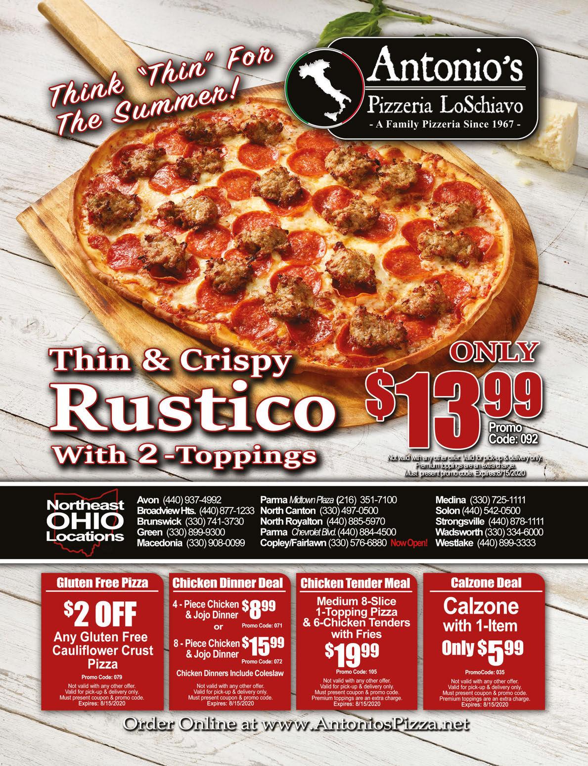 440-878-9999. Please mention when ordering. Expires 9/30/20 440-878-9999. Please mention when ordering. Expires 9/30/20 440-878-9999. Please mention when ordering. Expires 9/30/20 440-878-9999. Please mention when ordering. Expires 9/30/20 16pc. Chicken 50 Wings Full Sheet 1-Topping Pizza $7995 THE MINI PARTY PACK THE PARTY PACK 25pc. Chicken 50 Jo-Jo Potatoes Full Sheet 1-Topping Pizza 1/2 Pan of Salad (Dressing Not Included) 1/2 Pan of Rigatoni (Add 20 Meatballs for $10) $119.95 50pc. Chicken 75 Jo-Jo Potatoes Full Sheet 1-Topping Pizza Full Pan of Salad (Dressing Not Included) Full Pan of Rigatoni (Add 40 Meatballs for $20) $179.95 Please give us much notice as possible 440-878-9999. Please mention when ordering. Expires 9/30/20 Crazy 8 • 8pc. Chicken • 8 Jo-Jo Potatoes • 8 oz Coleslaw • 3 Rolls w/Honey Butter $1599 $5 2 Medium 2-Topping Pizzas $1999 NO SUBSTITUTIONS • LIMIT 3 440-878-9999. Please mention when ordering. Expires 9/30/20 Full Sheet 1-Topping plus 25 Pc Chicken $5995 add 50 JoJo’s for $14.99 Medium 2-Topping Pizza, 8pc. Chicken, 15 Jo-Jo Potatoes, Rolls w/Homemade Honey Butter & Coleslaw $2999 PIZZA & CHICKEN COMBO 440-878-9999. Please mention when ordering. Expires 9/30/20 440-878-9999. Please mention when ordering. Expires 9/30/20 Medium 3-Topping Pizza PLUS 10 Wings $1999 PIZZA & WING COMBO 50pc Chicken OR Chicken Tenders $5999 Make it 100pc for $110 440-878-9999. Please mention when ordering. Expires 9/30/20 440-878-9999. Please mention when ordering. Expires 9/30/20 THE SMALL PARTY PACK THE AWESOME COUPON Medium 1-Topping Pizza 8pc. Chicken 1/2 Slab Ribs 1lb Wings 15 Jo-Jo Potatoes & Coleslaw $45.99 440-878-9999. Please mention when ordering. Expires 9/30/20 440-878-9999. Please mention when ordering. Expires 9/30/20 440-878-9999. Please mention when ordering. Expires 9/30/20 440-878-9999. Please mention when ordering. Expires 9/30/20 5 BUCK 4 PIECE • Breast • Thigh • Leg • Wing Medium 2-Topping Pizza $1099 CHICKEN & RIB COMBO 8pc Chicken 1/2 Slab Ribs 15 Jo-Jo Potatoes Coleslaw Rolls w/Honey Butter $2999 Full Slab Ribs with 12 Jo-Jo Potatoes $1999