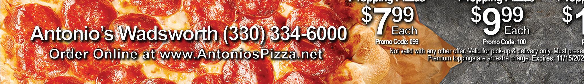 Medium Cheese Pizza Medium 1-Topping Pizza Pick-Up Only www.pizzaziospizzawadsworth.com • pizza44281.com • www.pizzaziospizzawadsworth.com • pizza44281.com www.pizzaziospizzawadsworth.com • pizza44281.com • www.pizzaziospizzawadsworth.com • pizza44281.com • www.pizzaziospizzawadswor th.com www.pizzaziospizzawadsworth.com • pizza44281.com • www.pizzaziospizzawadsworth.com • pizza44281.com www.pizzaziospizzawadsworth.com • pizza44281.com • www.pizzaziospizzawadsworth.com • pizza44281.com • www.pizzaziospizzawadswor th.com Sorry No Checks. Use Your Check Debit Card 157 Broad St. • Wadsworth (carryout or delivery) $2.00 Delivery ($7.00 Minimum Food Order for Delivery) *Premium Toppings are extra charge. (Toppings in coupon/specials are regular toppings only) Sunday through Thursday 10:30 a.m. to 9:00 p.m. Friday/Saturday 10:30 a.m. to 10:00 p.m. Expires 10-31-20 Expires 10-31-20 Expires 10-31-20 Expires 10-31-20 TMS18 TMS17 TMS19 TMS30 TMS29 $5 Anytime Menu •3 pc Chicken Tenders & JoJo’s •Pasta with Sausage Marinara & Cheese •Full Loaf of Garlic Bread w/Cheese & Marinara Cup •5 Tenders & 1 Dipping Sauce •10 Nuggets, 1 Dipping Sauce & Fries •1 pc Cod Fish Dinner with Fries $6 Anytime Menu •8 Boneless Wings •5 Jumbo Regular Wings •5 pc Fish Sticks & Fries •20pc. Chicken Nuggets (2 Dipping Sauces) •6 Chicken Tenders & 1 Dipping Sauce $8 Anytime Menu •12” Italian Sub •12” BLT Sub •7 Fish Sticks & Small Fries •Bacon Cheddar Fries •Medium Cheesy Bread w/Marinara •Shrimp & Fries •7 Jumbo Regular Wings Expires 10-31-20 DEBIT Expires 10-31-20 TMS26 TMS27 TMS20 TMS21 Expires 10-31-20 Expires 10-31-20 Expires 10-31-20 Expires 10-31-20 Expires 10-31-20 Expires 10-31-20 PLEASE MENTION CODE WHEN ORDERING TMS31 Expires 10-31-20 TMS33 TMS32 Expires 10-31-20 Expires 10-31-20 For Deliveries Outside of Wadsworth FOLDOVER DEAL Medium Foldover & Medium 1-Topping Pizza $24.99 Small 2-Topping Pizza $7.99 PIZZA DEAL NOW ACCEPTING CASH FOR ONLINE ORDERS WACKY WEDNESDAY $6.25 $5.25 PIZZA & TENDERS DEAL Medium 1-Topping Pizza & 8pc Tenders & JoJo’s $21.99 PIZZA DEAL Medium 2-Topping Pizza $10.99 15 Boneless Wings $10.49 15 Jumbo Reg. Wings $16.99 1-Topping X-Large Pizza 2-Topping $13.99 $15.99 TMS28 TMS25 Medium 1-Topping Pizza & 15 Boneless Wings $19.99 PIZZA & WING DEAL TMS22 Open For Lunch & Dinner / Carryout & Delivery BURGER DEAL WING DEAL PIZZA & BREAD DEAL Medium 1-Topping Pizza & Full Loaf of Garlic Bread w/Cheese $13.99 PIZZA & BREAD DEAL Medium 1-Topping Pizza & Small Cheesy Bread $15.99 PIZZA & BREAD DEAL X-Large 1-Topping Pizza & Medium Cheesy Bread $19.99 FOLDOVER & WING DEAL Large Foldover & 12 Boneless Wings $29.99 PIZZA DEAL NO LIMIT Sheet 1-Topping Pizza $25.99 SHEET DEAL SUB DEAL Two Footlong Subs & Large JoJo’s $18.99 Large Foldover & X-Large 1-Topping Pizza $35.99 FOLDOVER DEAL Add $2.00 Each Philly Steak/Chicken Ranch/Gyro Foldover Add $2.00 Each Philly Steak/Chicken Ranch/Gyro Foldover 1/2lb Classic Cheeseburger, Small Fries & 20oz Coke Product $9.99 NO LIMIT NO LIMIT TMS24 TMS23 Add $1.00 Each Philly Steak/Chicken Ranch/Fish Sub www.pizzaziospizzawadsworth.com • pizza44281.com Order from Our Menu Online