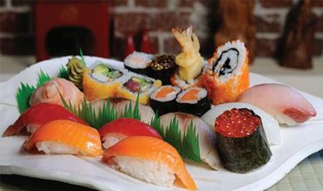Kani, Avocado & Cucumber topped with Slices of Salmon, Tuna, Red Snapper & White Tuna