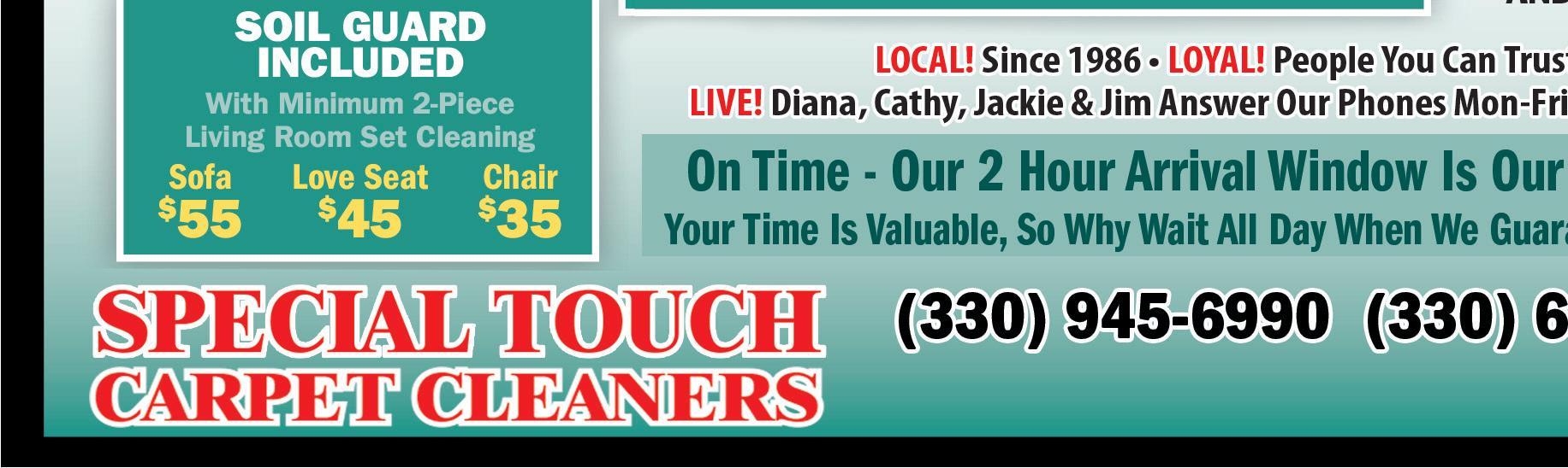 330.336.9795 • 330.723.9707 • www.dunnrightccc.com $20 OFF MAINTENANCE CLEANING SERVICE (New Clients Only) $40 OFF TOP-TO-BOTTOM DELUXE CLEANING SERVICE (New Clients Only) Valid with coupon. Not valid with any other offer. Expires 10/29/20. Valid with coupon. Not valid with any other offer. Expires 10/29/20. Family Owned & Operated Fully Bonded & Insured FREE ESTIMATES FREE Jewelry Appraisal Excludes Insurance Appraisals. Valid with coupon. Expires 10/29/20. TMS FREE Coin Appraisal Excludes Insurance Appraisals. Valid with coupon. Expires 10/29/20.TMS $5 OFF Any Jewelry Repair One coupon per repair. Valid with coupon. Expires 10/29/20. TMS $7 Watch Battery Includes: Removal/Replacement in watch Most models. Valid with coupon. Expires 10/29/20. TMS Les Hamilton is a local Jeweler with over 40+ years experience. Come visit him today for an HONEST appraisal!