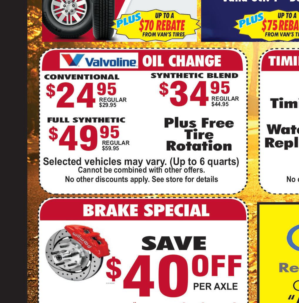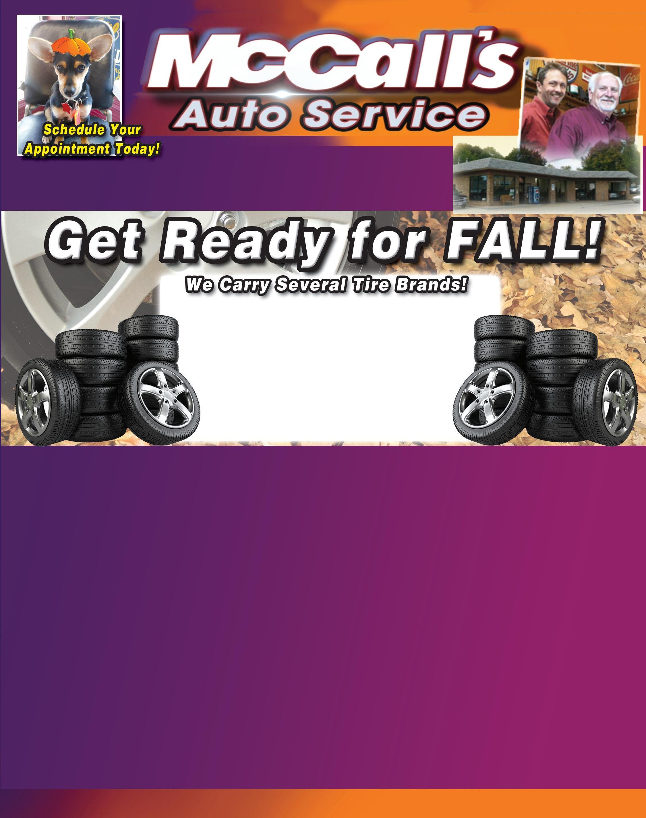 We can remove auto door dings & small dents keep your paint original maintaining your cars value & integrity, fast & affordable! Per Dent ($35 Thereafter) Paintless Dent Removal starting at ATTN: DIY GUY We Will Turn Your Brake Rotors $1200 Cooling System Flush $6995 (Within Wadsworth City Limits) each (Carry-In Only) With Coupon Only. Not valid with any other offer. McCall’s NAPA Auto Service. Please present coupon before service. Expires 10-29-20. With Coupon Only. Not valid with any other offer. McCall’s NAPA Auto Service. Please present coupon before service. Expires 10-29-20. $8595 With Coupon Only. Not valid with any other offer. McCall’s NAPA Auto Service. Please present coupon before service. Expires 10-29-20. With Coupon Only. Not valid with any other offer. McCall’s NAPA Auto Service. Please present coupon before service. Expires 10-29-20. Conventional OIL CHANGE & FILTER $2495 (up to 5qt oil) OIL CHANGE & FILTER OIL CHANGE & FILTER Full Synthetic Semi Synthetic Blend Excludes Diesels. With Coupon Only. Not valid with any other offer. McCall’s NAPA Auto Service. Please present coupon before service. Expires 10-29-20. PLUS FREE Tire Rotation $3495 (up to 5qt oil) Excludes Diesels. With Coupon Only. Not valid with any other offer. McCall’s NAPA Auto Service. Please present coupon before service. Expires 10-29-20. PLUS FREE Tire Rotation $4995 (up to 5qt oil) Excludes Diesels. With Coupon Only. Not valid with any other offer. McCall’s NAPA Auto Service. Please present coupon before service. Expires 10-29-20. PLUS FREE Tire Rotation FREE CHECK ENGINE LIGHT & CODES Diagnostic extra. With Coupon Only. Not valid with any other offer. McCall’s NAPA Auto Service. Please present coupon before service. Expires 10-29-20. FREE TOWING With Any Repair Over $100 Brake Special (Includes Free Tire Rotation) We will replace pads or shoes including machining rotors or drums and inspect and rotate your tires. $22500 per axle with OEM Factory Pads Foreign cars & trucks may be slightly higher. With Coupon Only. Not valid with any other offer. McCall’s NAPA Auto Service. Please present coupon before service. Expires 10-29-20. COOLANT SYSTEM FLUSH $6995 With Coupon Only. Not valid with any other offer. McCall’s NAPA Auto Service. Please present coupon before service. Expires 10-29-20. TRANSMISSION SERVICE $18999 With Coupon Only. Not valid with any other offer. McCall’s NAPA Auto Service. Please present coupon before service. Expires 10-29-20. Includes Filters & Fluids mccallautoservice.com 330.336.8530 • 400 College St • WADSWORTH Mon-Fri 8am-5pm CLOSED Sat & Sun Proudly Serving Wadsworth for 37 Years! Falcon Doral Tires Starfire Cooper Uniroyal Mastercraft BF Goodrich Firestone Michelin Bridgestone Yokahama Vanderbilt Sumitomo Nitto Power King Carlisle General Hancook Continental Toyo Kenda Fusion Hercules Kelly Pirelli KOMO Dunlop Ironman