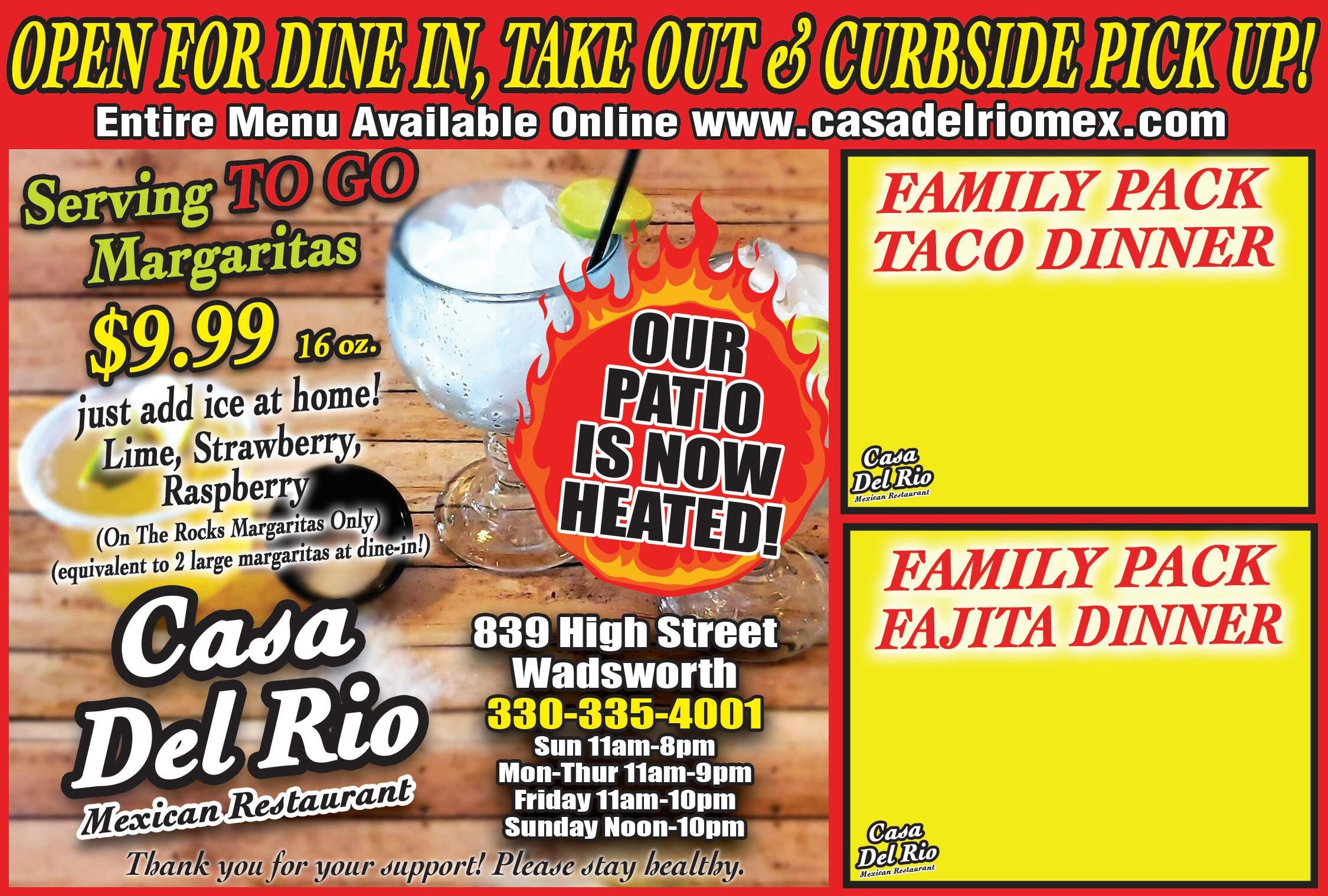 Includes 10 Tacos (Hard or Soft) Your Choice of • Ground Beef • Shredded or Grilled Chicken Includes Chips & Salsa, Rice & Beans PLUS FREE Cheese Dip $2499 (Feeds 4) Chicken $29.99 Steak $39.99 Shrimp $39.99 Includes Rice & Beans, Tortilla, Side of Lettuce & Sour Cream, 2 Large Chips & Large Salsa Carry out only. Not valid with any other offer or special. With coupon. Expires 10/29/20. Carry out only. Not valid with any other offer or special. With coupon. Expires 10/29/20. 2 Dozen Wings $22.00 Carry out only. Not valid with any other offer or special. With coupon. Expires 10/29/20. Carry out only. Not valid with any other offer or special. With coupon. Expires 10/29/20. Carry out only. Not valid with any other offer or special. With coupon. Expires 10/29/20. Carry out only. Not valid with any other offer or special. With coupon. Expires 10/29/20. W W W W W W Medium Two Item Pizza & 8pc Chicken & JoJo’s $25.99 2 Medium Two Item Pizzas $24.99 Large Two Items Pizza $12.99 2 Large Two Item Pizzas $29.99 12pc Chicken, JoJo’s, Pint of Coleslaw & Pint of Hot Sauce $19.99