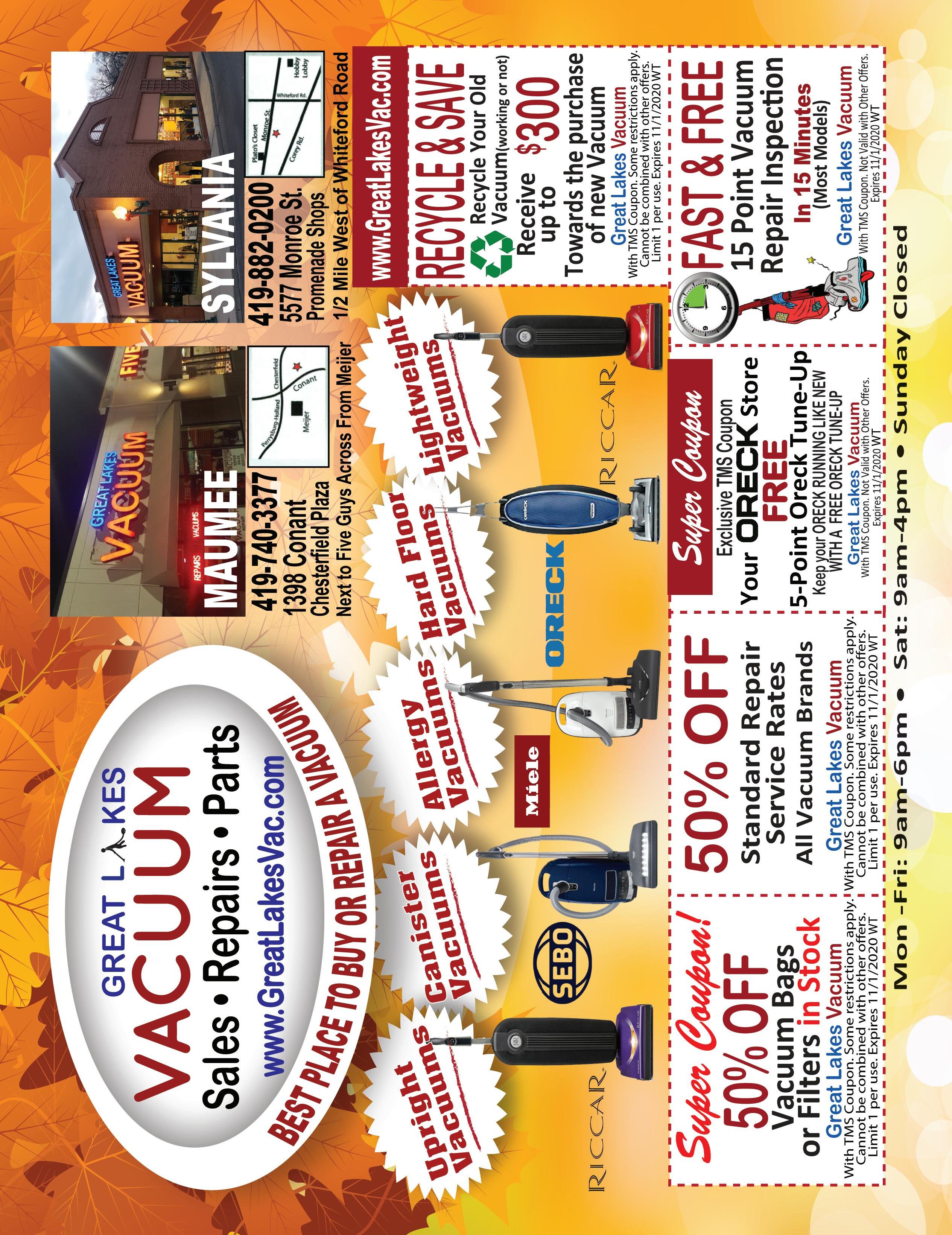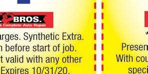 Current & New Customers ONE COUPON PER DOG. With TMS coupon. Not valid with any other offer. Exp. 10/31/20 FULL GROOM Large or Small Dogs 5942 SECOR Same side of the road & two doors away from REGGIE’S BIKE SHOP. Just north of Alexis 419-241-3669 www.gratefulpetgrooming.net OPEN LATE Tuesday & Wednesday $3 OFF FREE Halloween scarf & bows 1313 S Reynolds Rd, Tol (419) 389-6718 • Reynolds & Airport Hwy. 4015 Secor Rd, Tol (419) 472-1000 • Secor at W. Sylvania ® Not valid with other offers or promotions. Limit one coupon per customer per visit. Present coupon at the time of purchase. Shop retains coupon. No substitution or cash refunds. Consumer pays applicable tax. May not be reproduced, purchased, traded or sold. Internet distribution prohibited. Good at participating Toledo OH locations only. Expires 10/31/20 Buy A Double Scoop, Get A Chocolate Dipped Waffle Cone Or Bowl LIMIT 4 PER VISIT. 2 Pre-Packed Quarts $7.99 Single quart at regular price. Banana Split $5 LIMIT 4 PER VISIT. Not valid with other offers or promotions. Limit one coupon per customer per visit. Present coupon at the time of purchase. Shop retains coupon. No substitution or cash refunds. Consumer pays applicable tax. May not be reproduced, purchased, traded or sold. Internet distribution prohibited. Good at participating Toledo OH locations only. Expires 10/31/20 Not valid with other offers or promotions. Limit one coupon per customer per visit. Present coupon at the time of purchase. Shop retains coupon. No substitution or cash refunds. Consumer pays applicable tax. May not be reproduced, purchased, traded or sold. Internet distribution prohibited. Good at participating Toledo OH locations only. Expires 10/31/20 New! Creature CreationsTM Calling all creatures! No matter what kind of creature you are, we have your creation. 3344 Secor Rd by Scrambler Marie’s 419-531-0334 All Natural Performance and Libido Enhancer $3299 Save $4.00 A natural way to enhance libido and performance in both men & women! With TMS coupon. Not valid with other offers. Expires 10/31/20 We have expanded our line of LOCAL FARM TO TABLE PRODUCTS!!! Discounts apply to full retail prices. With TMS coupon. Not valid with other offers. Expires 10/31/20 of same product on your favorite vitamins & supplements: Kal • Carlson • Now Solaray • Jarrow 4400 Heatherdowns Colonial Plaza Opening Soon - Original Management Buy 1, Get 2 50% OFF MailCurbside& Order ServiceAvailable Eat where great service, great food and great folks come together! 4941 Dorr Street, Toledo, Ohio 43615 419-407-5390 www.redcrabseafood.com OPEN Tuesday thru Thursday: 12:00 PM - 10:00 PM Friday - Saturday: 12:00 PM - 11:00 PM Sunday: 12:00 PM - 10:00 We are sure to deliver the most succulent seafood meal you've ever had! Having doubts? Come on down and we will amaze you with our fantastic food and service! Daily Specials $27 to $32 10% OFF Your Entire Bill Dine-In • Delivery & Carry-Out Liquor Available PATIO IS OPEN! Available PATIO IS OPEN! LOW COUNTRY BOIL $26 BLUE CRAB SPECIAL $24 WEEKEND SPECIAL $35 1 lb Blue Crabs 1/2 lb Shrimp 1 Corn & 2 Potatoes 1 Lobster Tail 1/2 lb Shrimp 1/2 lb Snow Crab Leg 1 Corn & 2 Potatoes 1/2 lb Snow Crab Leg 1/2 lb Shrimp 1/2 lb Sausage 1 Corn & 2 Potatoes
