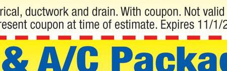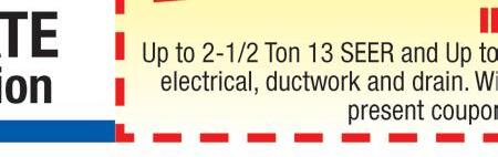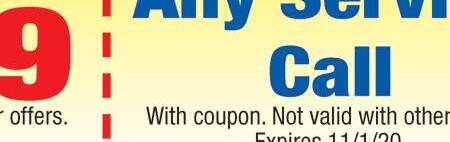 $2650 Normal installation to existing electrical, ductwork and drain. SHREK HEAING & A/C • 419-410-3830 With TMS coupon. Exp. 10/31/20 SHREK HEAING & A/C • 419-410-3830 With TMS coupon. Exp. 10/31/20 FURNACE CLEAN & CHECK SHREK HEAING & A/C • 419-410-3830 With TMS coupon. Exp. 10/31/20 SHREK HEAING & A/C • 419-410-3830 With TMS coupon. Exp. 10/31/20 FREE SERVICE CALL WITH PAID REPAIR $99 VALUE! $95000 WATER HEATER INSTALLED 40 Gallon Natural Gas/ Standard Vent Ohio License #48537 FURNACE $7900 We keep you comfortable in Every Season! INSTALLED BRANDS MAY VARY 96% Efficient Up to 60,000 BTU EMC Blower shrekheatingtoledo.com Good Guys! Good Prices! 10% off All services forFrontline Workers 419-410-3830 shrekheating@gmail.com FREE ESTIMATES Residential Heating & Cooling Specialists • Power Washing • Sealing www.hiteconcrete.com Ask about our NEIGHBORHOOD referral discount! Licensed & Insured. Locally owned & operated - Serving Ohio, Michigan & Indiana 10% OFF Any Concrete Leveling Job! OF $200 OR MORE! Must present coupon at time of acceptance. Expires 10/31/20 419-875-4279 1-866-404-4483 Coupon Must Be Presented At Time Of Purchase Expires 10/31/20