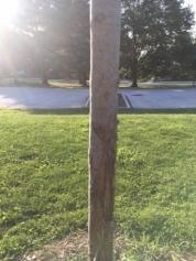 not recommended because it does not allow the tree's trunk to photosynthesize and can also harbor wasps and voles. Deer have impressive leaping skills: if a whole section of yard is to be fenced, the recommended fence height is eight feet. Below is an example of deer rubon a tree plus pictures of various protection measures recently installed at Wilson Farm Park and Valley Forge Middle School. Staking a tree can be helpful if it is young and is part of a deer protection strategy, but staking should be removed after one year to avoid harming the tree and substituted with a pole to secure the grid or fencing itself
