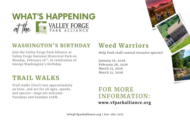 Big things are coming to Valley Forge in 2026 and the Valley Forge Park Alliance will be right at the heart of it all. As the nation celebrates the 250th anniversary of the signing of the Declaration of Independence, Valley Forge National Historical Park —and the Alliance — will also mark its 50th year as part of the National Park System.