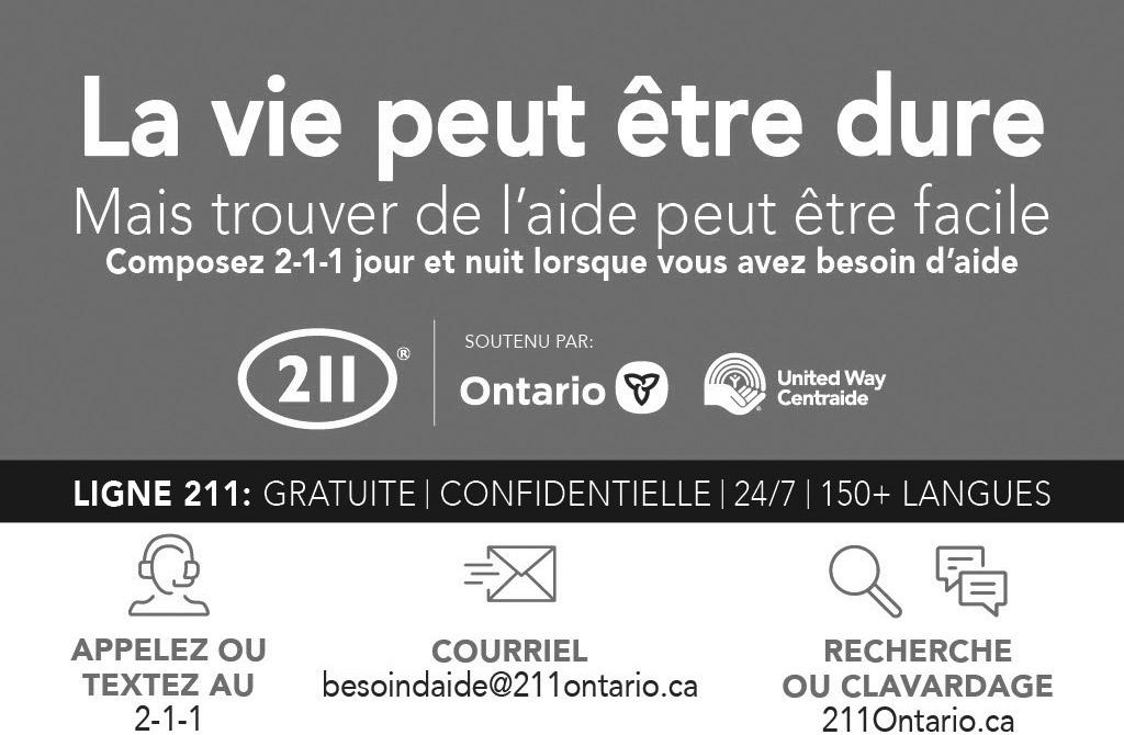 • Appelez le 211. C’est gratuit, c’est confidentiel, accessible 24 heures sur 24 et 7 jours sur 7 dans plus de 150 langues