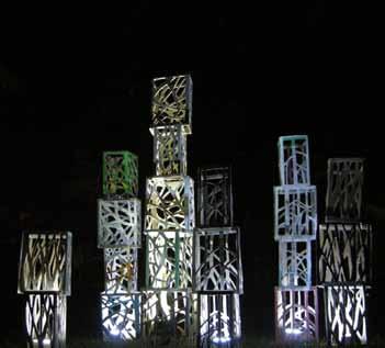Light Boxes feature the patterns of strangler figs, mangroves and stringybarks, trees from three ecosystems common to this area. The reclaimed plywood boxes still radiate the fractal patterns of trees.