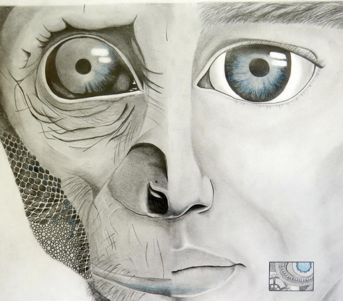 Within this study of myself I have begun to explore the potential path of my future. I combine both graphite and charcoal to represent the divergent paths in front of me. Graphite is sturdy, reliable and precise while charcoal is its wild counterpart, bold, daring and dramatic. Which will I be?