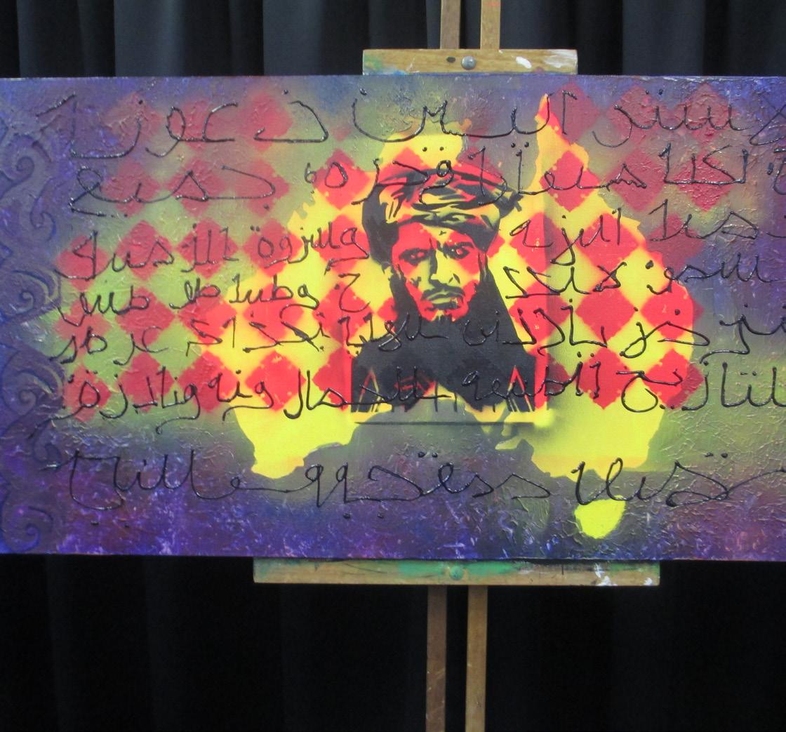 The journey represented in my work is a cultural journey, the journey of the future of Australia’s identity. I decided to identify one particular culture that has obvious symbols of their identity, the Arabic culture. I chose the phenotype of the Taliban soldier because people of society identify these traits as their stereotypes.