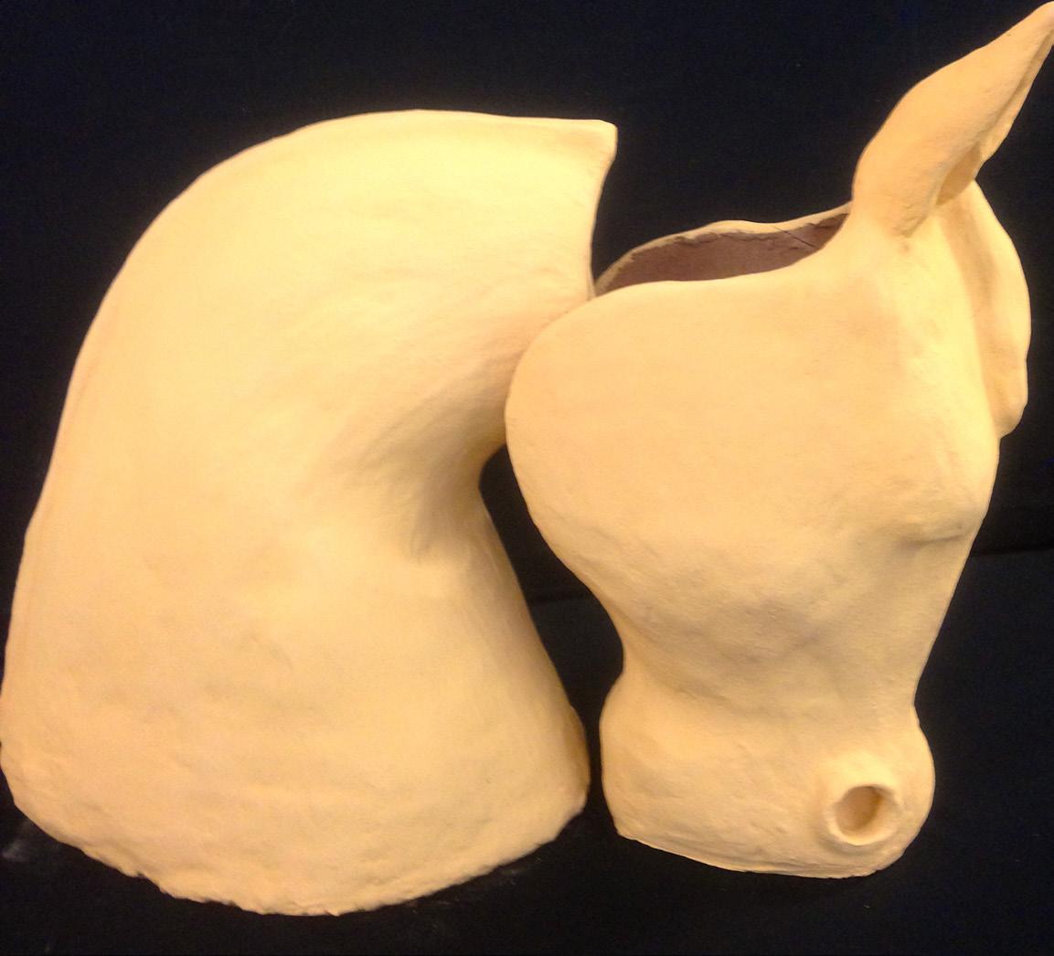 I have created a horse to represent myself as I have grown up riding horses. It is where I feel most at home and most connected to my true identity. Using my favourite medium, clay, I designed a hollow horse with a hidden white figure to show the pure part of my identity that is always relaxed, centred and happy when surrounded by horses.
