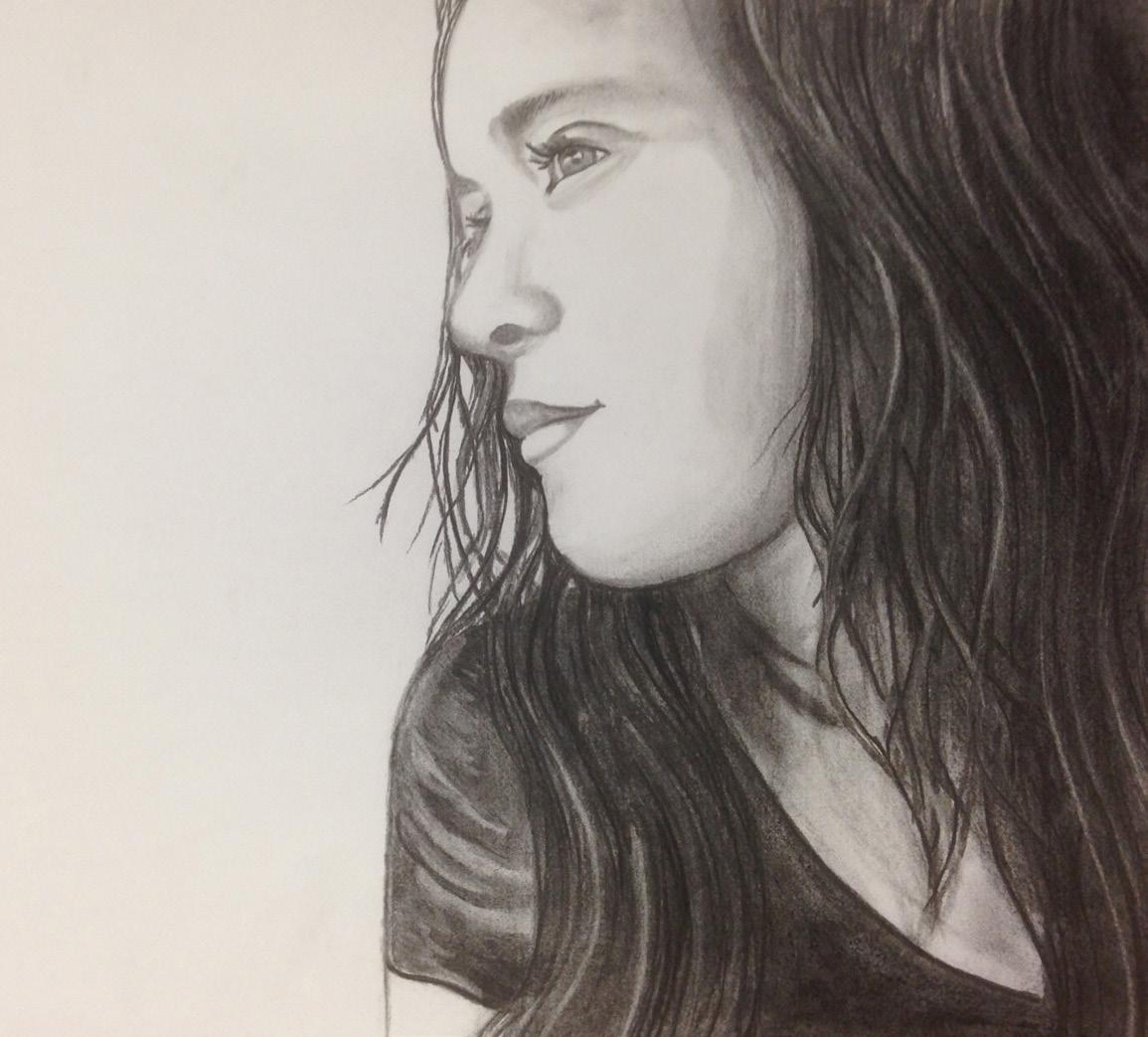 My self-portrait, using charcoal and variations of green ink, is a reflection of the connection I have with nature. I am at peace when I am immersed in greenery.