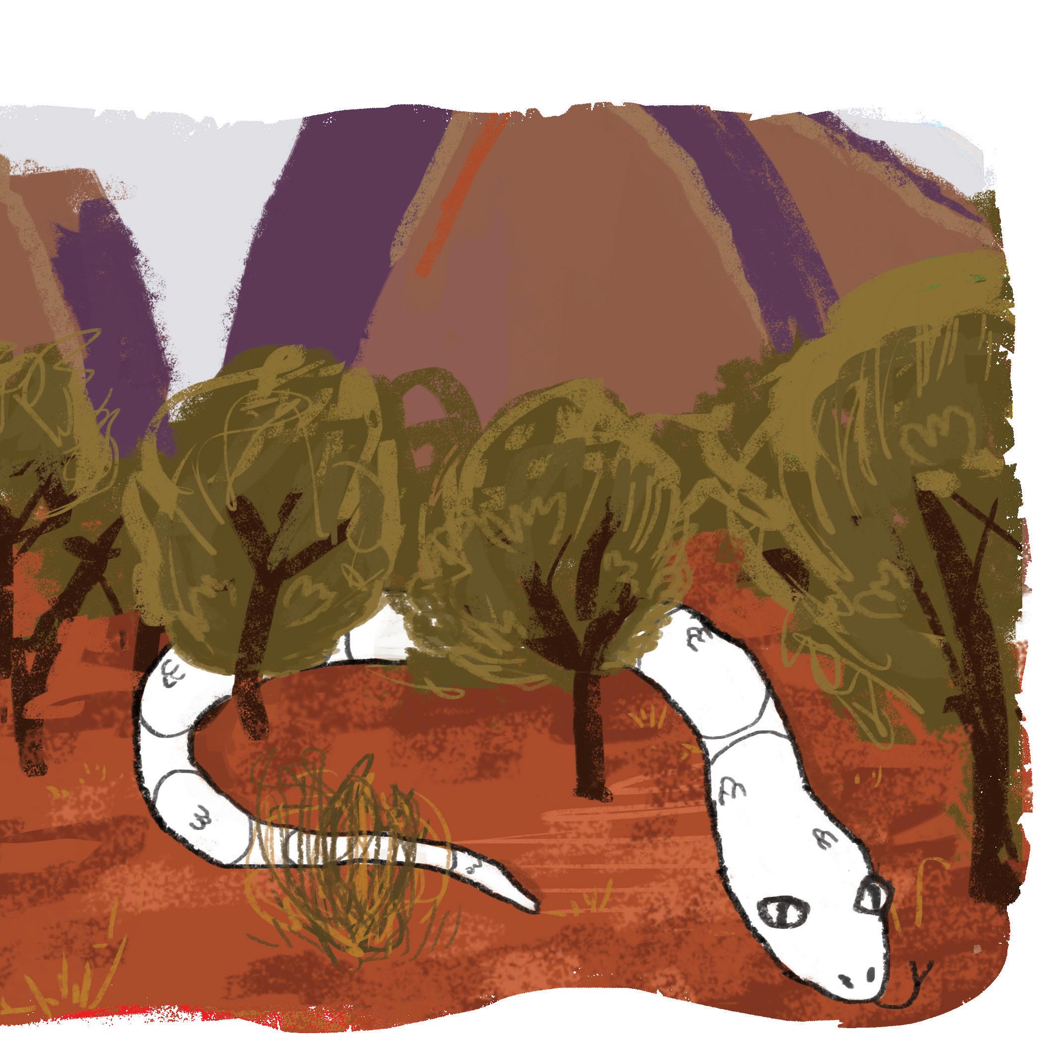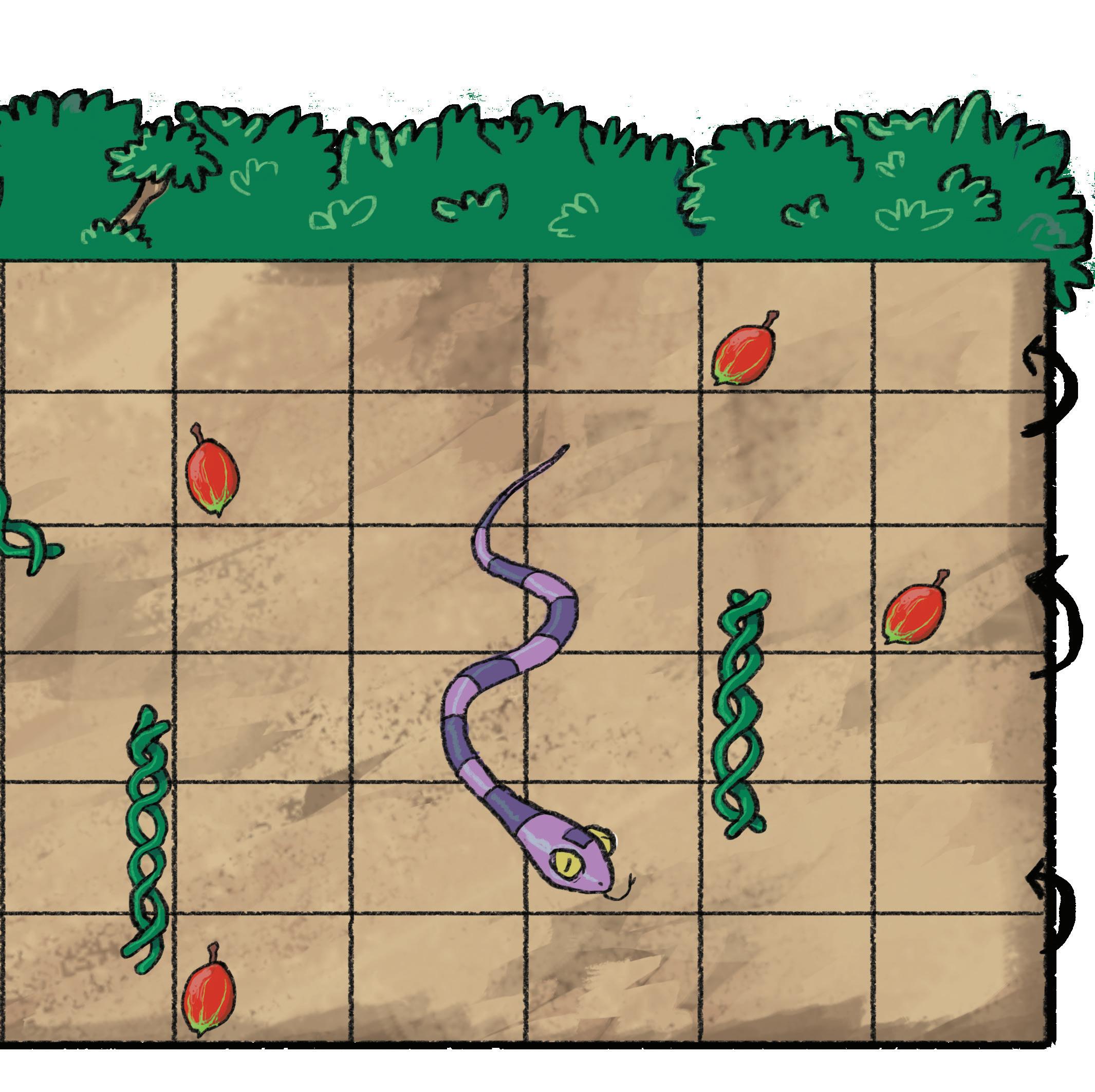 Using only secondary* colours, design the snake’s skin.