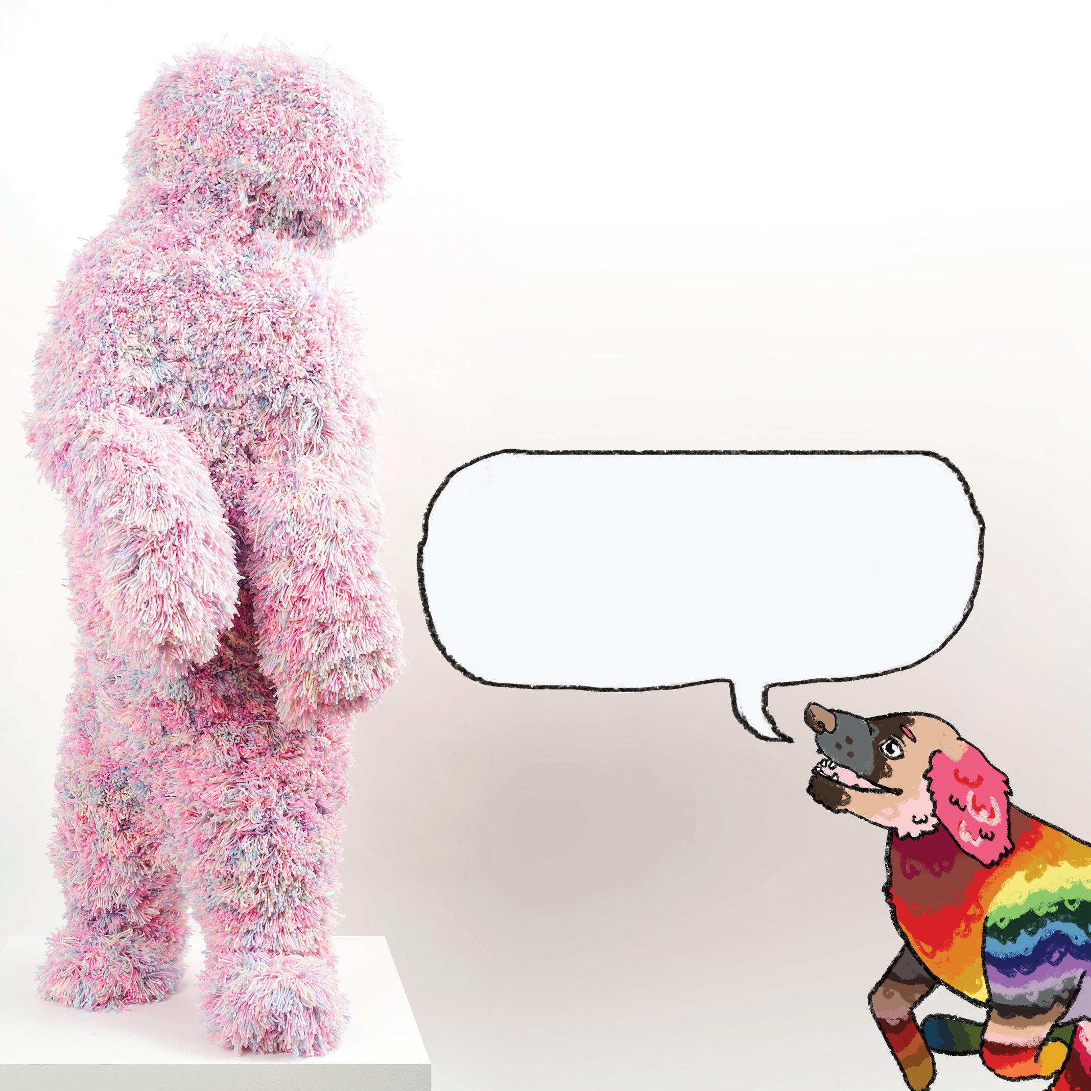 Troy Emery is a soft sculpture* _______________ who likes to create ‘fake taxidermy’* animals out of colourful materials and _______________. Troy uses many different materials including pom-poms to decorate* his animals and make them look interesting. His soft sculptures* _______________ the different ways we view animals, including as _______________ objects.