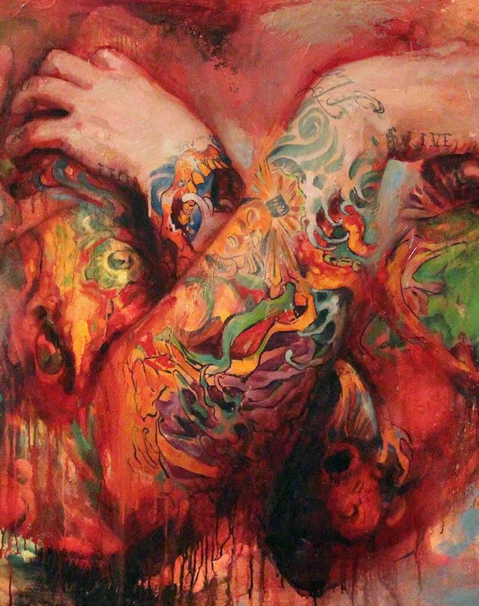 This was closely followed in 2012 by the release of his 256 page hard cover book, Memoir: The Tattooed Portraits Series Memoir contains full colour reproductions of works from Barber’s Tattooed Portraits series, which began in 2005 and includes paintings of Don Ed Hardy, Bob Roberts, Grime, Paul Booth, Marcus Pacheco, Kim Saigh, Jack Rudy, Thomas Woodruff, Aaron Cain, Mike Giant, Adrian Lee, Margaret Cho, Shige and Stanley Moskowitz.