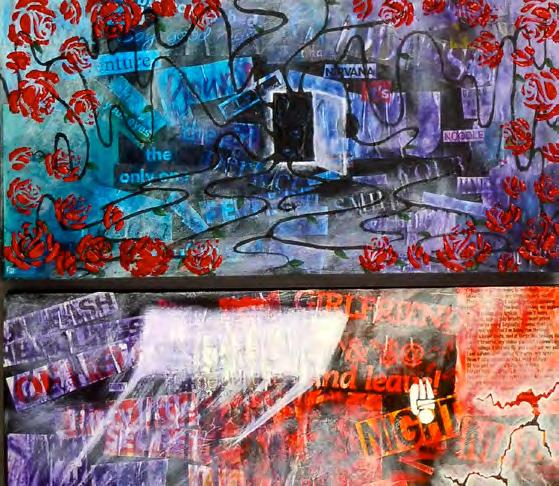 Colour pencil, acrylic, soft pastel Depression. It’s a deep, dark, black hole that can feel like it never ends. I wanted to display what Vincent Van Gogh, Kurt Cobain, and Robin Williams felt inside their heads, and what they showed on the outside. This artwork illustrates their melancholic thoughts, emotions, and feelings before they ended their lives. I wanted to express their fight for sanity, a nightmare, a loss of consciousness; leading to the thought that suicide was the only option.