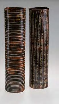 Stoneware, clay, silver and copper lustre pigments, reduction fired 32 x 32 x 5 cm each