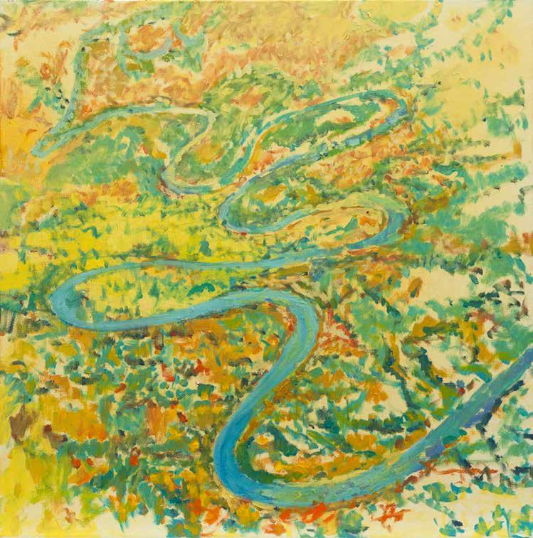 Painted over the course of three years, the river provides not only a unifying theme for these new works, but also a fitting metaphor for the artist’s career – and particularly this series.