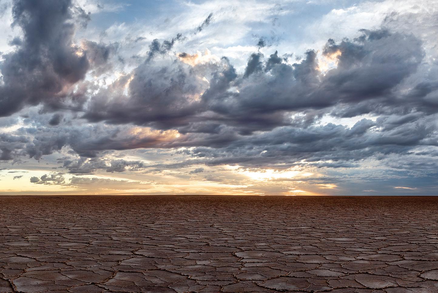 Despite the drought conditions, Fredericks did have to contend with periodic thunderstorms, which in part provided inspiration for his more recent series, Hector. The chance of a thunderstorm while shooting at Lake Eyre would force Fredericks to move from the location.
