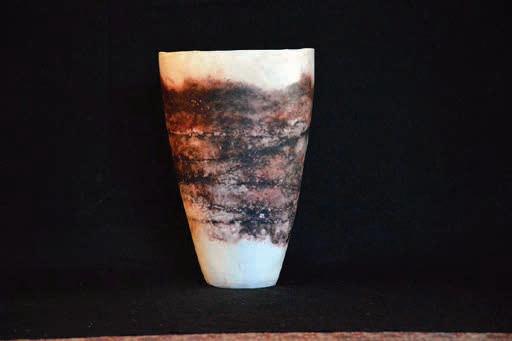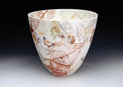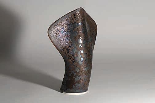 Pierced and carved stoneware clay, silver and copper reduced lustre pigments
