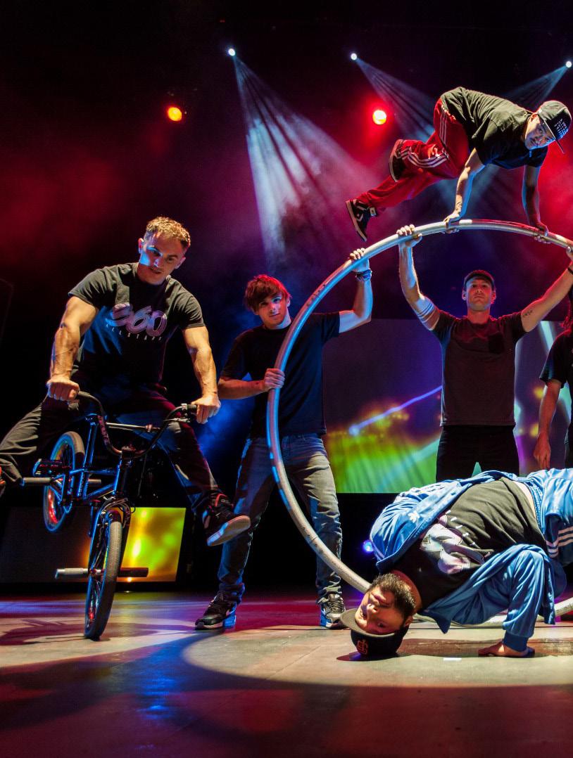 A phenomenal physical performance exploring all forms of rotation, 360 ALLSTARS connects the street with the elite to deliver a supercharged urban circus. Boasting a stellar cast of World Champion and World Record-holding artists and athletes, 360 ALLSTARS is a spectacular fusion of the extraordinary artistry that emerges from street culture.