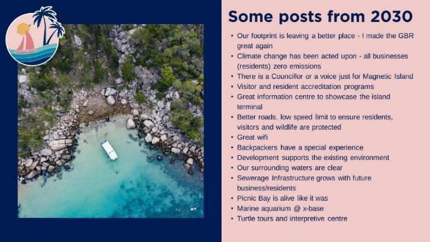 We want Magnetic Island to be a world leading sustainable island destination inspiring land and reef stewardship that enhances the quality of life of our community and strengthens the cultural identity of our island home.