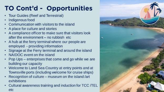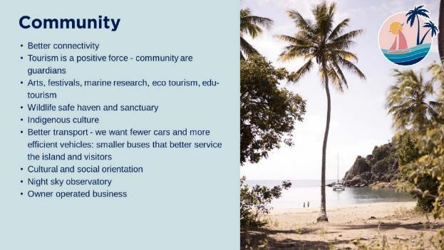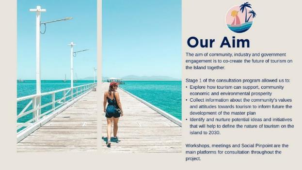 • delivering ‘best of Australia’ tourism experiences by matching the Island’s position in GBRWHA and its natural beauty with a mix of immersive experiences that improve the appeal of the destination