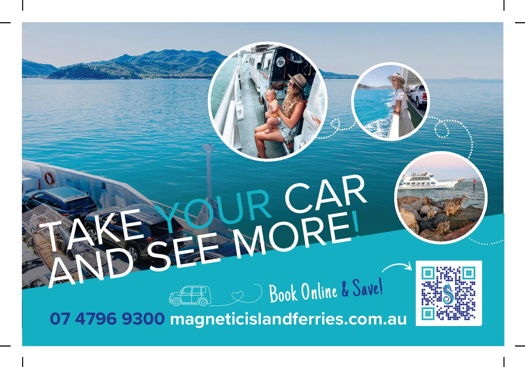 Only 8km from Townsville is Magnetic Island. Take a short 20-minute ferry ride with the regular passenger service - SeaLink North Queensland. Or opt to take your vehicle on the only car ferry service to the island with Magnetic Island Ferries. Both services operate daily – check online for timetables.