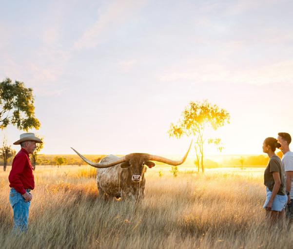 Australia’s “Texas in the Outback” Old West experience! Join us to see and interact with some of the longest horned cattle in the world. They are direct descendants of the millions of Texas Longhorns that walked the great Texas trail herds in the late 1800s! Unique & memorable!