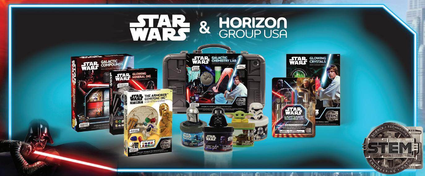 Horizon Group USA collaborated with Lucasfilm to develop Star Wars-inspired Slime Jars, Lightsaber Engineering Kits, Grow & Glow Kyber Crystals, and more. According to Laura Pfeffer, Vice President of Licensing & Specialty Sales, the new line of STEM-based products (pictured below) empowers kids to learn alongside their favorite characters from the long-running Star Wars franchise.