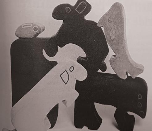 Six large fabric-covered foam animals interlock to form a giant 3D puzzle.