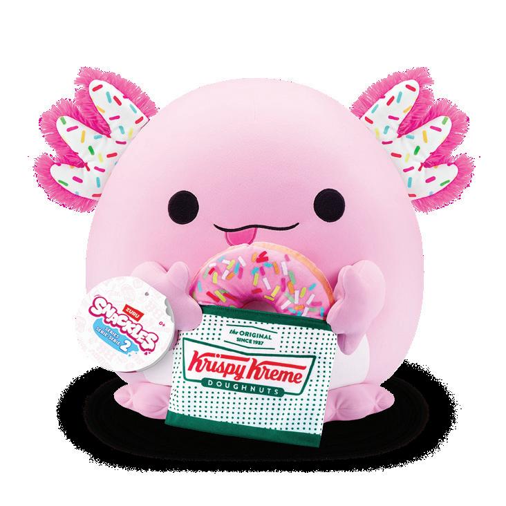 There are 11 new 14-inch plush to collect including the Hershey’s Shark, the Krispy Kreme Axolotl (pictured), and more. Each soft, squishy Snackles character comes paired with a fan-favorite mini snack brand along with a description of their personality.