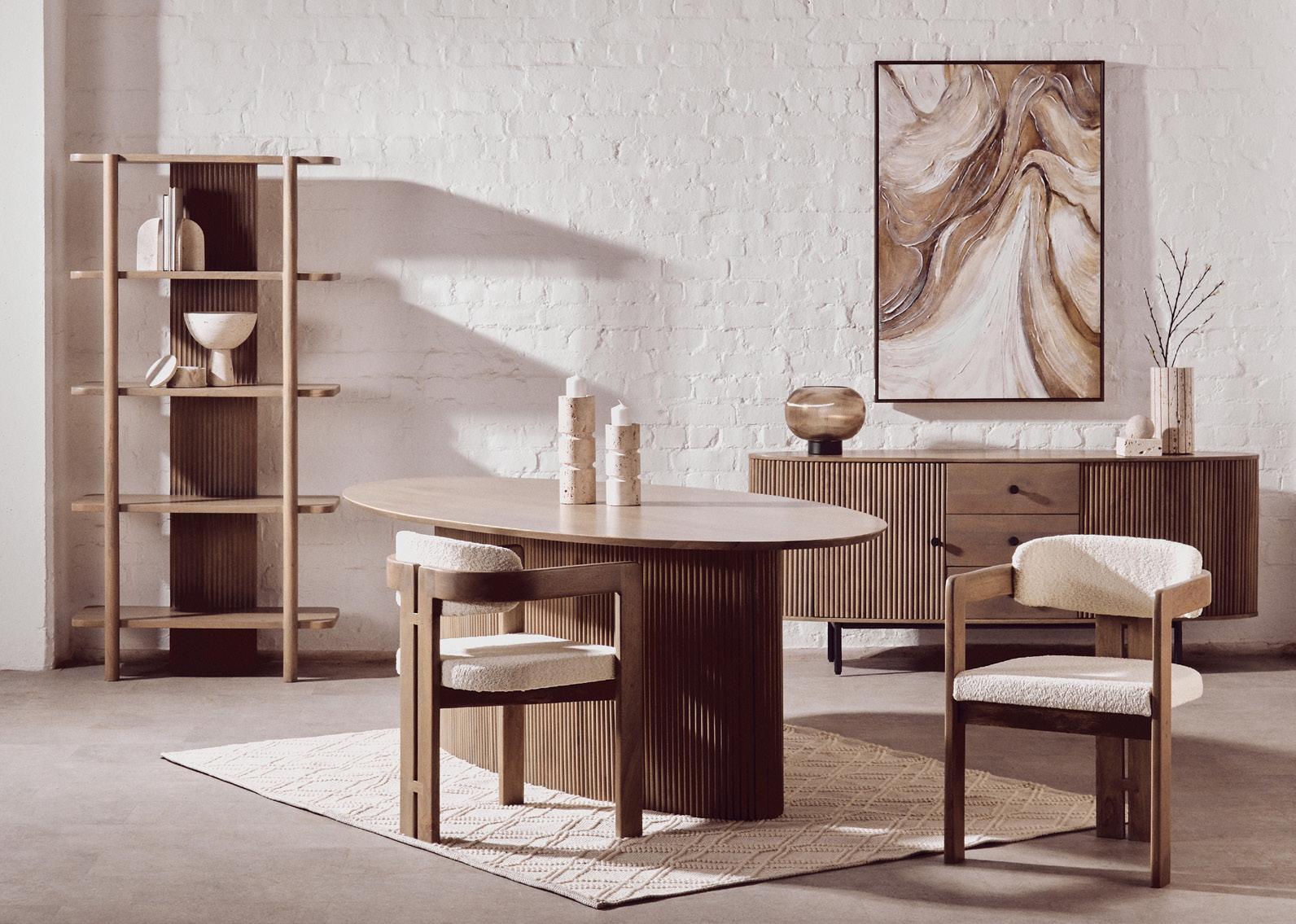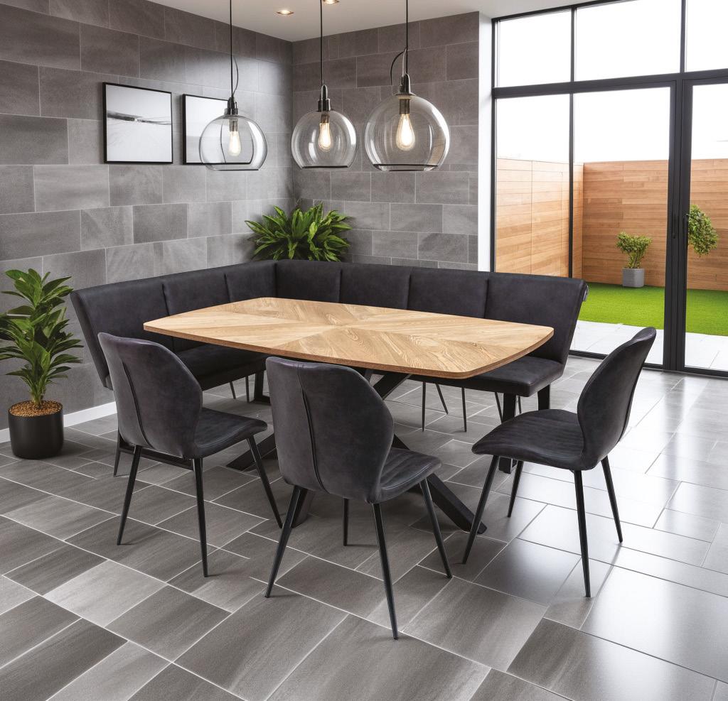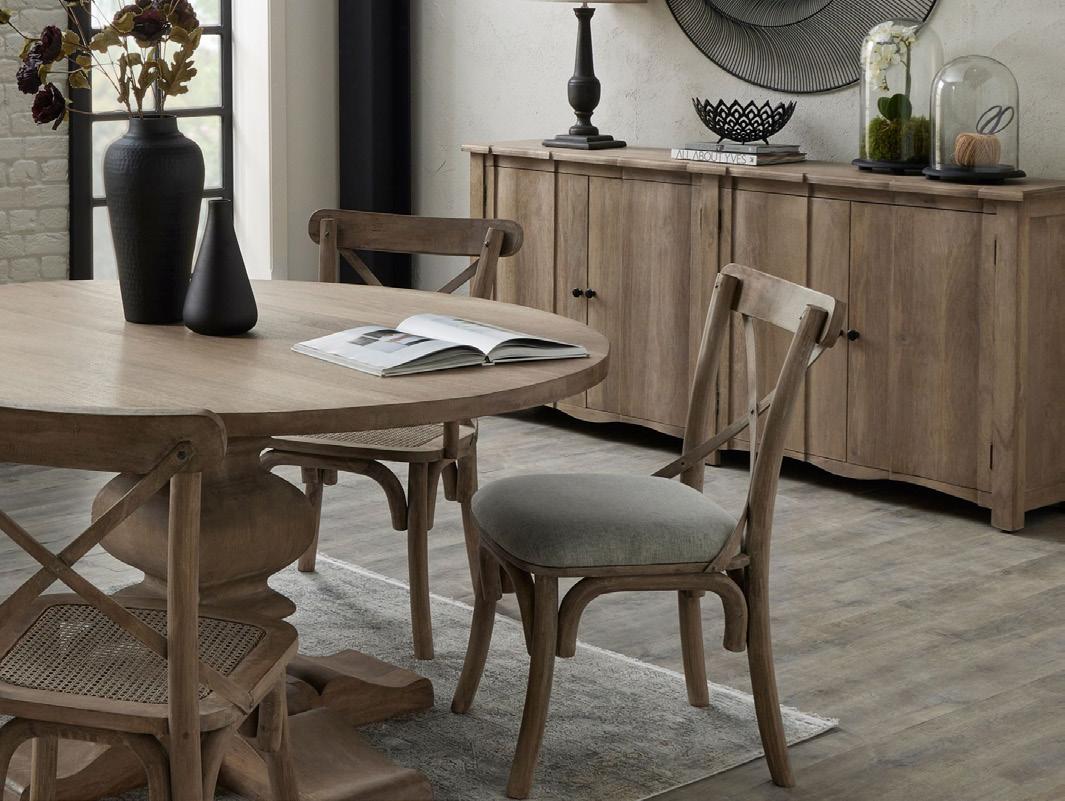 We’re leading with downstairs, because it’s very much the focus in UK households. We’re unveiling five ranges with a Modern Country aesthetic, encompassing dining, occasional furniture and custom upholstery.