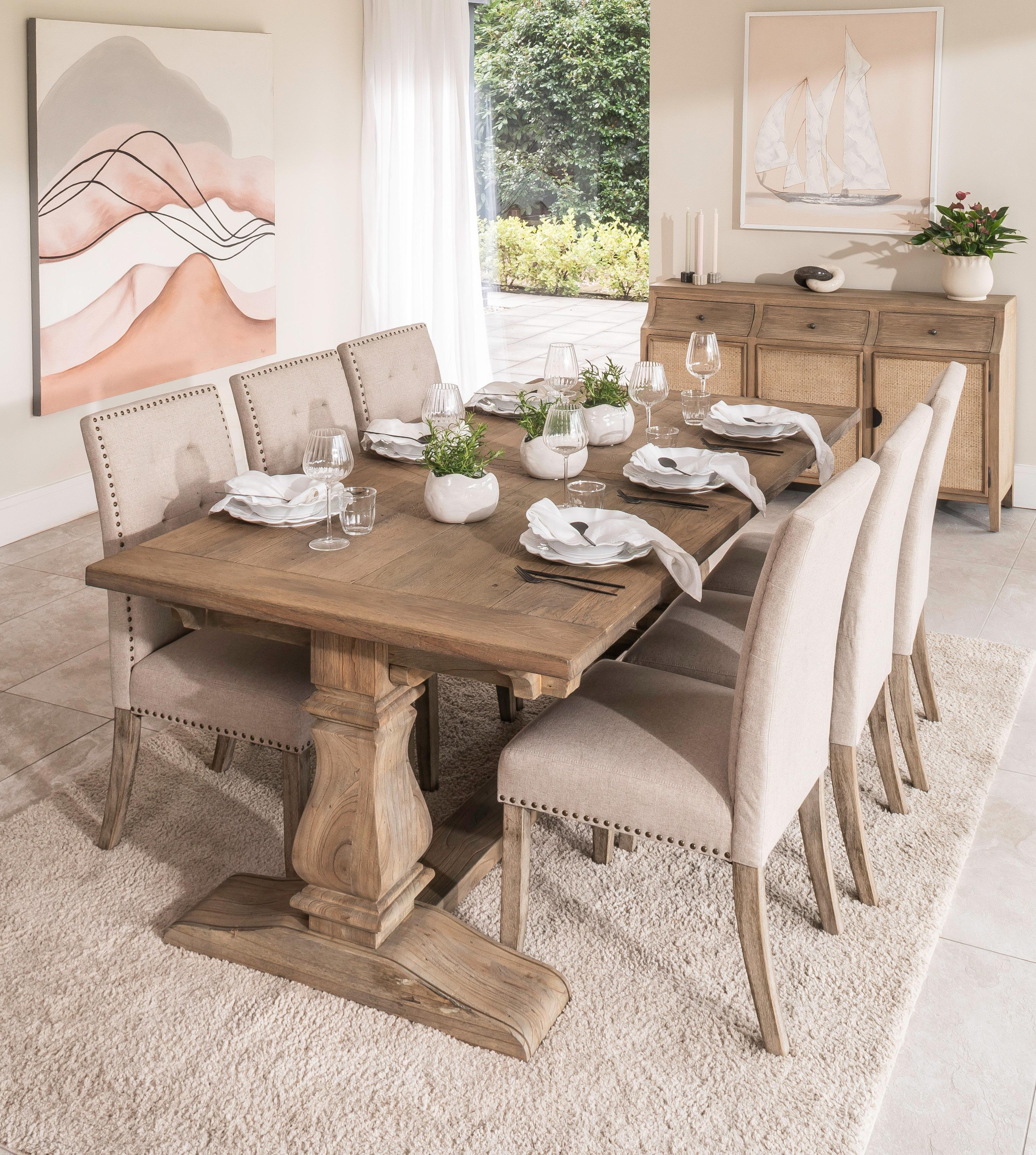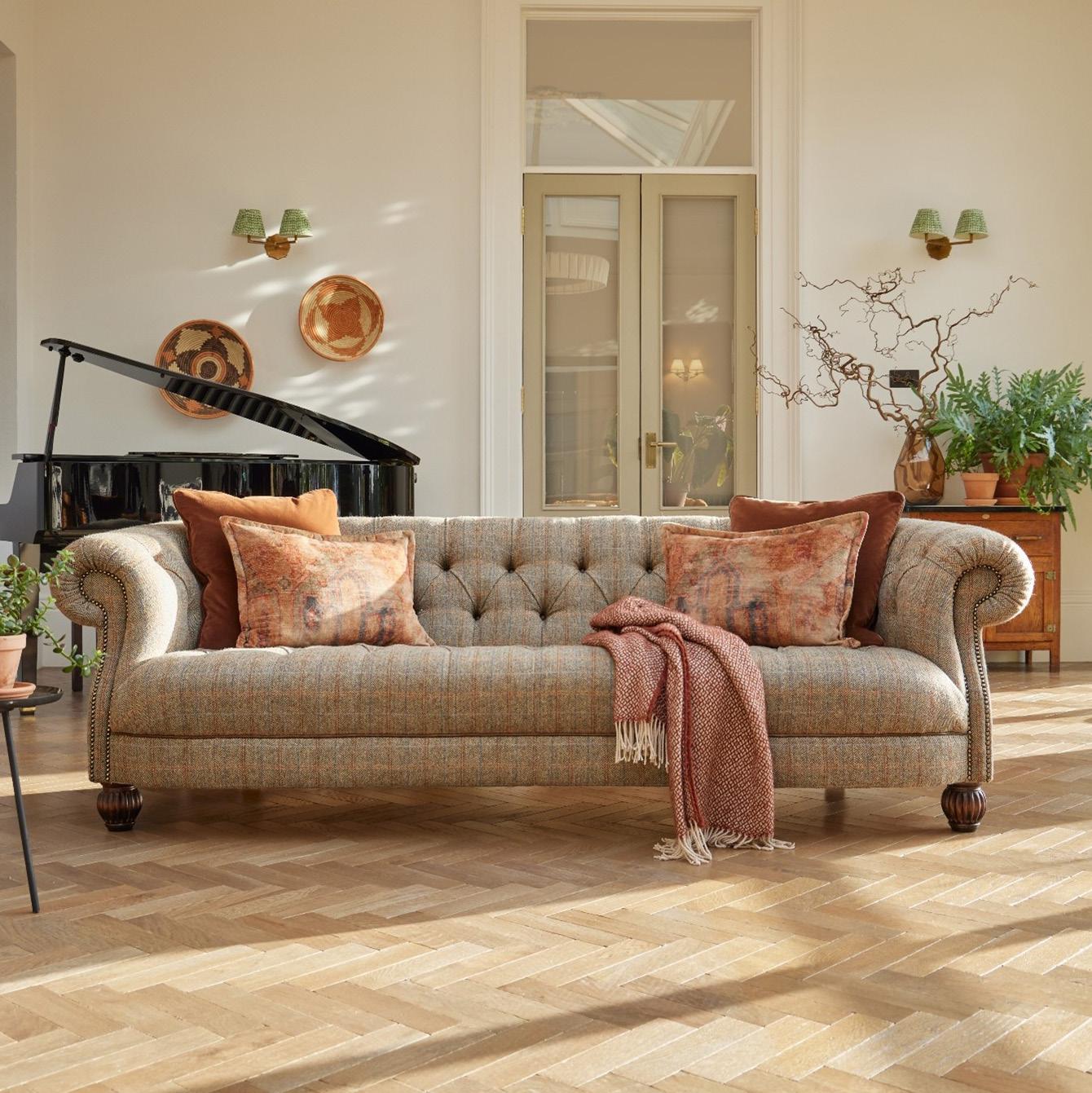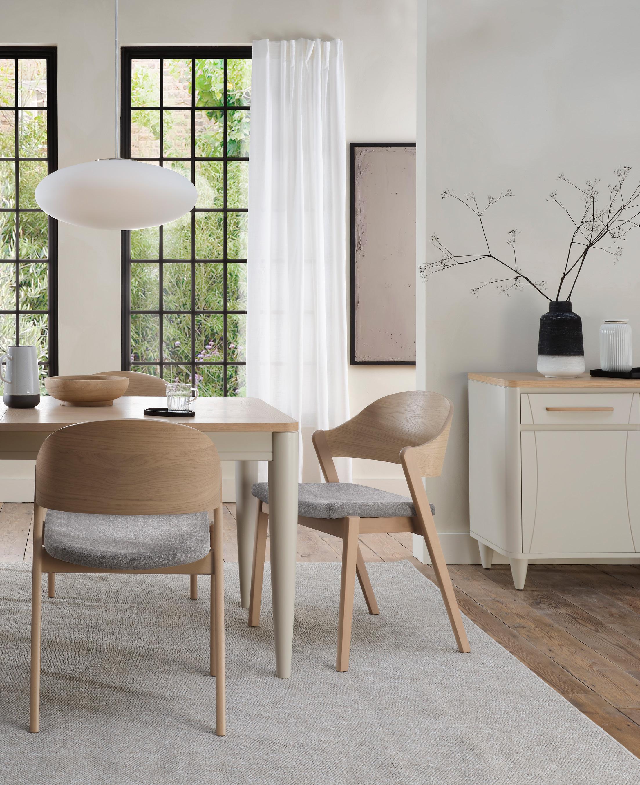 We’re leading with downstairs, because it’s very much the focus in UK households. We’re unveiling five ranges with a Modern Country aesthetic, encompassing dining, occasional furniture and custom upholstery.